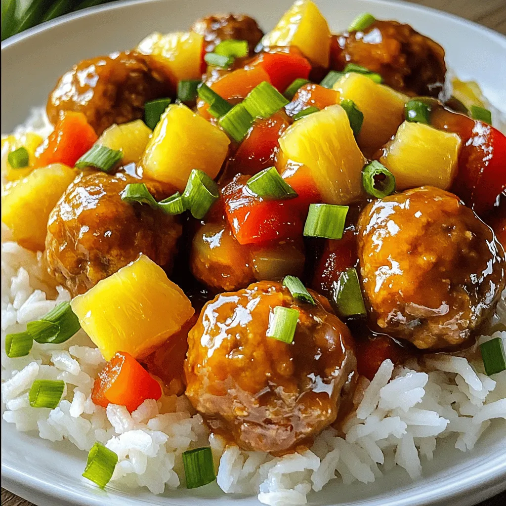 ![- Ground beef - Breadcrumbs - Parmesan cheese - Egg - Garlic The main ingredients create the base of your sweet and sour meatballs. Ground beef gives the meatballs their hearty flavor. Breadcrumbs add texture, while Parmesan cheese gives a rich taste. An egg binds everything together, making the meatballs easy to shape. Garlic adds a lovely aroma and enhances the flavor. - Sugar - Apple cider vinegar - Ketchup - Soy sauce - Pineapple chunks The sweet and sour sauce brings the dish to life. Sugar balances the tangy apple cider vinegar. Ketchup adds a nice tomato base, while soy sauce gives a savory depth. Pineapple chunks add a burst of sweetness and texture, making the sauce even more enjoyable. - Cornstarch (for thickening) - Water (for thickening) - Bell peppers You can make your sauce thicker by using cornstarch and water. This gives the sauce a nice consistency that clings to the meatballs. Adding bell peppers not only adds color but also gives extra crunch and flavor. For the full recipe, check out the details above! First, take a large bowl and combine the following ingredients: - 500g ground beef - 1/2 cup breadcrumbs - 1/4 cup grated Parmesan cheese - 1 egg - 2 cloves garlic, minced - 1 teaspoon onion powder - 1 teaspoon dried oregano - Salt and pepper to taste Mix these ingredients gently until they come together. You don’t want to overmix. Next, form the mixture into small meatballs, about 1 inch in size. This size helps them cook evenly. Place your meatballs on a baking sheet lined with parchment paper. Now, preheat your oven to 200°C (400°F). This step ensures that your meatballs cook properly. Once the oven is hot, put your baking sheet with the meatballs inside. Bake them for 20 to 25 minutes. They should turn a nice brown color and be cooked through. While the meatballs bake, let’s make the sweet and sour sauce. In a saucepan, combine: - 1/2 cup sugar - 1/2 cup apple cider vinegar - 1/4 cup ketchup - 1 teaspoon soy sauce Stir these ingredients on medium heat until the sugar dissolves. Then, add in: - 1 cup pineapple chunks - 1/2 cup diced red bell pepper - 1/2 cup diced green bell pepper Bring the mixture to a gentle simmer. If you want a thicker sauce, mix 1 tablespoon cornstarch with 2 tablespoons water to make a slurry. Stir this into the sauce and cook for an extra 2 to 3 minutes. Once the meatballs are done, you can coat them in the sweet and sour sauce or serve the sauce on the side. Enjoy your meal with rice or noodles for a fun and tasty dinner! For the complete recipe, check the [Full Recipe]. - Ideal meatball size: Aim for meatballs about 1 inch wide. This size cooks evenly and is easy to eat. If you make them too big, they may not cook through. If too small, they may dry out. - Ensuring moisture retention: To keep meatballs moist, do not overmix the meat mixture. Mix just until combined. Adding breadcrumbs helps absorb moisture, making them juicy. You can also use milk to soak the breadcrumbs for extra softness. - Balance of sweet and sour flavors: The key to great sauce is balance. Aim for equal parts sugar and vinegar. This gives you that classic sweet and sour taste. Use fresh pineapple for a bright flavor. You can adjust sugar for sweetness and vinegar for tanginess based on your taste. - Tips for thickening: If you want a thicker sauce, mix cornstarch with a bit of water to form a slurry. Stir this into the sauce while it simmers. It will thicken quickly, giving you a rich and glossy finish. - Ideal side dishes: Serve sweet and sour meatballs over rice or noodles. They soak up the sauce well. Steamed vegetables, like broccoli or carrots, make a great side too. You can also try serving with a fresh salad for crunch. - Garnishing options: Add chopped green onions or sesame seeds on top. This adds color and a nice crunch. You can also sprinkle fresh herbs like cilantro for a fresh twist. Garnishes make your dish look bright and inviting. For the complete recipe, check the Full Recipe section. {{image_2}} You can swap ground beef for ground turkey or chicken. These lean meats provide a lighter taste. Ground turkey may require a bit more seasoning since it has less flavor. Chicken works well too and stays juicy when cooked right. For a vegetarian option, consider using lentils or chickpeas. These add protein while being tasty and fun. You can mash them up and mix in the same ingredients as the meatballs. Want to spice things up? Add red pepper flakes or cayenne to the sauce. This gives a nice kick that balances the sweetness. You can also swap the sugar for honey or maple syrup for a twist. If you want a healthier option, reduce the sugar and use a sugar substitute. For a tangier sauce, add more vinegar or some fresh lime juice. Add vegetables to your meatballs for extra flavor and nutrition. Chopped spinach or grated carrots blend well into the mix. You can also serve the meatballs over different carbs. Rice is classic, but try noodles or even quinoa for a fresh take. These choices bring variety and make each meal feel special. After you enjoy the sweet and sour meatballs, store any leftovers in the fridge. Place them in an airtight container. This keeps them fresh and tasty. Meatballs can last about three to four days in the fridge. For longer storage, freeze the meatballs and sauce together. Use freezer-safe containers or bags. This way, they can last up to three months. Just remember to label them with the date. When it's time to eat leftovers, you can reheat them in two main ways. The oven is best for even heat. Preheat the oven to 180°C (350°F). Place the meatballs in a baking dish, cover with foil, and heat for about 15-20 minutes. The microwave works too, but it can make them a bit soggy. If using the microwave, heat for 1-2 minutes at a time. Check often to avoid overcooking. Keep the flavors and textures intact by not overheating them. Cooked meatballs can stay safe in the fridge for about three to four days. If frozen, they can last for up t
