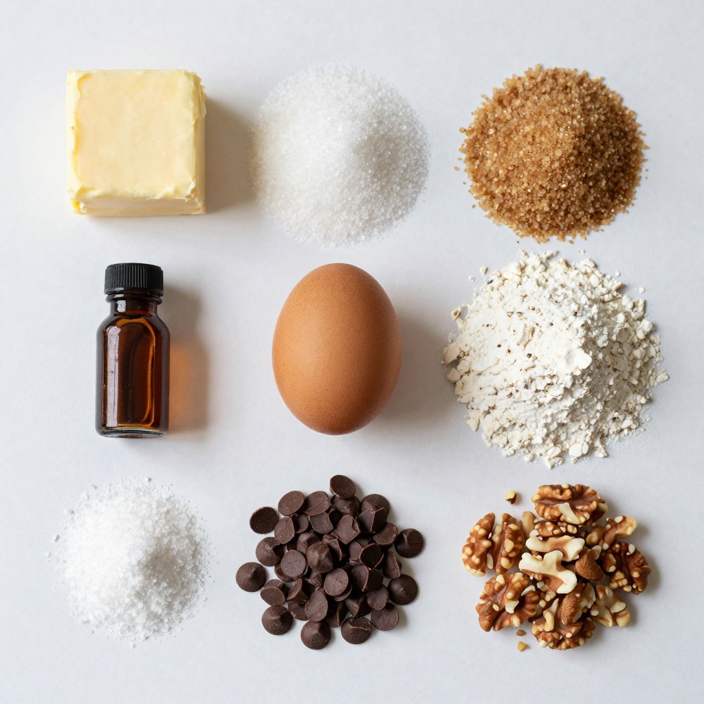 The egg helps bind everything together, making the cookie soft. All-purpose flour gives it structure. Baking soda adds lift, while salt balances the sweetness. The chocolate chips bring joy, and nuts add a nice crunch.