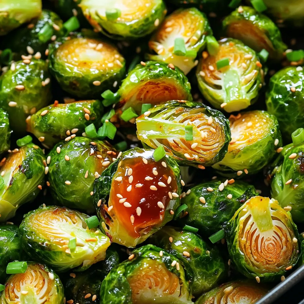 - Once cooked, transfer the Brussels sprouts to a serving dish. If desired, sprinkle with sesame seeds and chopped green onions for added flavor and presentation.