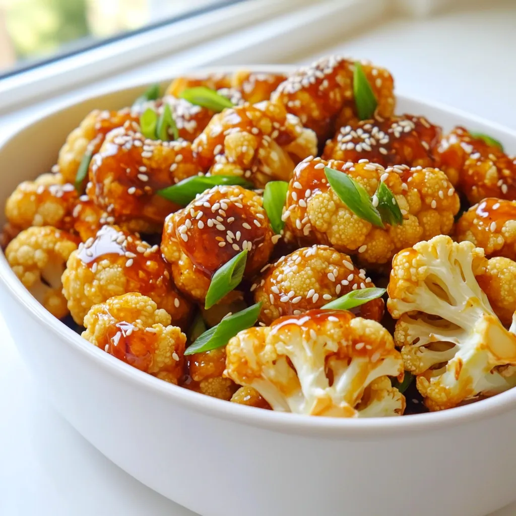 - 1 medium head of cauliflower, cut into florets - 2 tablespoons honey - 2 tablespoons sriracha sauce - 1 tablespoon olive oil - 1 teaspoon garlic powder - 1 teaspoon onion powder - Salt and pepper to taste - 1 tablespoon sesame seeds (for garnish) - 2 green onions, sliced (for garnish) You can swap honey for maple syrup or agave nectar if needed. For sriracha, try different brands that fit your taste. You can also use avocado oil or coconut oil instead of olive oil. If you want to change the spices, use garlic salt instead of garlic powder. Onion salt works well in place of onion powder too. To cut cauliflower into florets, start with a medium head. Remove the leaves and stem. Hold the head and slice it down the middle. Then, cut each half into smaller pieces. Keep cutting until you have bite-sized florets. Rinsing the cauliflower is key. Place the florets in a bowl of cold water. Swirl them around gently to remove dirt. Drain them in a colander and let them dry. You want them as dry as possible. This helps the sauce stick and makes them crispier. In a large bowl, add honey and sriracha sauce. Measure out two tablespoons of each. Next, pour in one tablespoon of olive oil. This adds richness. Then, add one teaspoon each of garlic powder and onion powder. Finally, sprinkle in salt and pepper to taste. Whisk these ingredients together until well mixed. The sauce should be smooth and shiny. Taste it to balance flavors. If you want more heat, add extra sriracha. For added sweetness, add more honey. Adjust until it’s just right for you. First, preheat your air fryer to 375°F (190°C). This helps cook the cauliflower evenly. Let it heat for about five minutes. Next, place the cauliflower florets in the basket. Arrange them in a single layer. Avoid crowding them; this ensures they crisp up well. Depending on your air fryer size, you may need to batch cook. Air fry the cauliflower for 15 to 18 minutes. Shake the basket halfway through. This lets them cook evenly and get crispy. Check for doneness by looking for golden brown color. They should be crispy outside and tender inside. To get that crispy bite, use a few air fryer tricks. First, always preheat your air fryer for about five minutes. The hot air will help the cauliflower get nice and crisp. Next, be sure to spread the florets in a single layer. Overcrowding the basket leads to steaming instead of frying. If you have a lot of cauliflower, cook it in batches for the best results. Want to spice up your dish? You can add extra spices like smoked paprika or cumin. They add depth and warmth to the flavor. If you prefer more heat, try adding more sriracha or even a dash of cayenne pepper. For a milder dish, reduce the sriracha and balance it with more honey. This will keep the sweetness while controlling the spice level. Serving this dish well makes it even more appealing. Try placing the cauliflower on a colorful plate. Sprinkle the sesame seeds and green onions on top for a burst of color. You can serve it as an appetizer or a side dish. Pair it with rice, a fresh salad, or crispy tacos. This dish shines in any meal setting and is sure to impress! {{image_2}} You can enjoy cauliflower in many ways. Air fryer buffalo cauliflower offers a spicy kick. Just toss the florets in buffalo sauce and air fry until crispy. Garlic parmesan cauliflower bites are another great option. Coat the florets in olive oil, garlic, and parmesan cheese. Air fry them until golden for a cheesy treat. If you want a vegan version, swap honey for maple syrup. This keeps the sweet notes while staying plant-based. For gluten-free needs, ensure your sauces are gluten-free. Most hot sauces work great, but always check the labels. You can also switch up the sauces in your dish. Try teriyaki or barbecue sauce for a different taste. Mixing sweet and savory flavors can make it even better. Add a touch of brown sugar to the sauce for extra sweetness. This will balance the heat from the sriracha nicely. To keep your Air Fryer Honey Sriracha Cauliflower fresh, store it in the fridge. Use an airtight container to avoid moisture. Place the cooled cauliflower in the container. It helps maintain flavor and texture. For freezing, let the cauliflower cool completely. Then, spread it out on a baking sheet. Freeze it for about one hour. Once frozen, transfer it to a freezer bag. This way, you can easily grab portions later. When reheating, use the air fryer. This keeps the cauliflower crispy. Heat at 350°F (175°C) for about 5-7 minutes. You can also use the oven, but it may take longer. Cooked cauliflower lasts about 3-5 days in the fridge. It’s best to eat it fresh for the best taste. To check for spoilage, look for these signs: - A sour smell - Slimy or mushy texture - Dark spots or discoloration If you notice any of these, it’s time to toss it out. Always trust your senses when it comes to food safety. Yes, you can use frozen cauliflower. It saves time and is easy to find. However, frozen cauliflower may have a softer texture when cooked. This can affect the crispiness you want in a dish like Air Fryer Honey Sriracha Cauliflower. Fresh cauliflower gives a firmer bite, while frozen can be more convenient. If using frozen, make sure to thaw and drain it well. This helps avoid excess moisture during cooking. The spice level depends on the sriracha you choose. Most sriracha sauces are mild to medium in heat. If you are sensitive to spice, start with less sriracha. You can always add more after cooking. The honey balances the heat, giving a sweet and spicy flavor. The more you mix the honey and sriracha, the better the taste. You can try other hot sauces too if you want different spice levels. Air Fryer Honey Sriracha Cauliflower pairs well with many sides. Try serving it with steamed rice or quinoa for a filling meal. You can also add a fresh salad for crunch. If you like dips, a yogurt sauce or ranch dressing works great. For drinks, consider iced tea or a light beer. These options