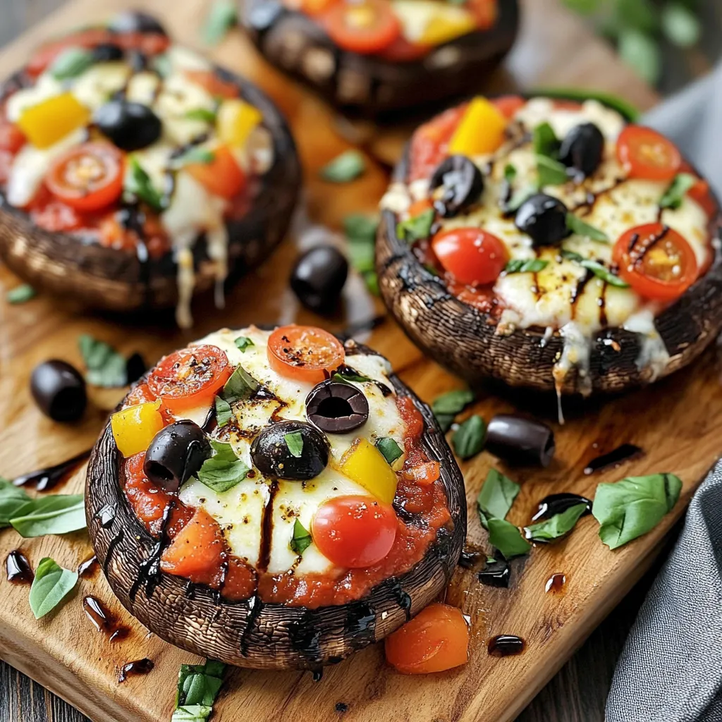 To make Air Fryer Stuffed Portobello Pizzas, you need a few key ingredients. Each one adds a unique taste. Here’s what you’ll need: - Portobello mushrooms: Four large ones, with the stems removed. They hold the toppings well. - Marinara sauce: One cup of your favorite sauce. It brings great flavor. - Cheese and Toppings: One cup of shredded mozzarella cheese, plus cherry tomatoes, black olives, and bell pepper. - Seasonings: You’ll need fresh basil, Italian seasoning, salt, and pepper for added taste. These ingredients combine to create a delicious meal. Each bite is a burst of flavor. Choose fresh ingredients for the best taste. First, preheat your air fryer to 375°F (190°C). This step is key for even cooking. While it heats up, let’s prepare the mushrooms. Take four large portobello mushrooms and remove the stems. This makes space for all the tasty toppings. Lightly spray the mushrooms with olive oil on both sides. Season them with salt and pepper to enhance their flavor. Now, it’s time to fill the mushrooms. Place the mushrooms cap side up in the air fryer basket. Spoon marinara sauce generously into each mushroom cap. You want to fill them well to get that rich flavor. Next, sprinkle shredded mozzarella cheese evenly across all the mushrooms. Now, let’s add some colorful toppings. Distribute halved cherry tomatoes, sliced black olives, and diced bell pepper on top of the cheese. These toppings add great taste and texture. Finish with a sprinkle of Italian seasoning and fresh basil. This adds a nice aromatic touch. It’s time to air fry! Cook the stuffed portobello pizzas for 10 to 12 minutes. Look for the cheese to be bubbly and golden. This means they are ready to eat. After cooking, remove them from the air fryer and let cool for a couple of minutes. This short wait makes them easier to handle. Enjoy your tasty stuffed pizzas! To ensure even cooking, place the mushrooms cap side up. This helps the heat reach all parts. Give each mushroom some space in the air fryer. If they touch, they may not cook well. Adjusting cooking times is key. Each air fryer is different. Start with 10 minutes, then check for doneness. If the cheese isn’t bubbly and golden, add a minute or two. For serving, use a wooden board or colorful plate. This makes the dish pop. Lay the stuffed mushrooms in a neat row. Garnish with extra basil leaves for a fresh look. You can also drizzle balsamic glaze on top. This adds flavor and makes the dish more appealing. {{image_2}} You can change up the cheese in your stuffed portobello pizzas. Try using goat cheese or feta for a tangy twist. These cheeses melt well and add a unique flavor. You can also use dairy-free cheese if you want a vegan option. Next, think about different veggies. Instead of black olives, you might like spinach or artichokes. You can even add some cooked sausage or pepperoni for meat lovers. Feel free to mix in any favorite toppings, like mushrooms or zucchini. For vegan modifications, swap the mozzarella for a plant-based cheese. You can also use a blend of nuts and nutritional yeast for a creamy taste. Just make sure to check the marinara sauce for any hidden dairy. If you need a gluten-free option, use a gluten-free marinara sauce. Most sauces are naturally gluten-free, but always read the label. The portobello mushrooms serve as a great base, so you don’t miss the crust at all. To keep your stuffed portobello pizzas fresh, store them in the fridge. Place them in an airtight container. They last about 3 to 4 days. If you want to save them longer, you can freeze them. Wrap each pizza in plastic wrap and then place them in a freezer bag. They will stay good for about 2 to 3 months in the freezer. When it's time to enjoy your leftovers, reheating is key. For the best results, use the air fryer again. Preheat it to 350°F (175°C). Place the stuffed pizzas in the basket and heat for about 5 to 7 minutes. This will make the cheese melty and the mushrooms warm. You can also use a microwave, but the air fryer gives a better texture. Make sure to check that they are heated through before serving. Can I use other types of mushrooms? Yes, you can use other mushrooms. Shiitake or button mushrooms work well too. Just make sure they are large enough to hold toppings. Each type will give a unique flavor. Experiment with what you like! How do I know when the pizzas are done? The pizzas are done when the cheese is bubbly and golden. You can also check if the mushrooms are tender. This takes about 10-12 minutes in the air fryer. Keep an eye on them to avoid overcooking. What can I serve with stuffed portobello pizzas? These pizzas pair well with a simple salad or garlic bread. A fresh green salad adds crunch and nutrition. For a side, try some roasted veggies. They complement the flavors nicely and make a complete meal. You learned about making stuffed portobello pizzas from start to finish. We covered the key ingredients, detailed steps, and helpful tips for cooking and presenting. You discovered fun variations to adapt the recipe for your needs. Don’t forget to store leftovers properly and reheat them for the best taste. Enjoy this delicious dish and share your tasty creations!