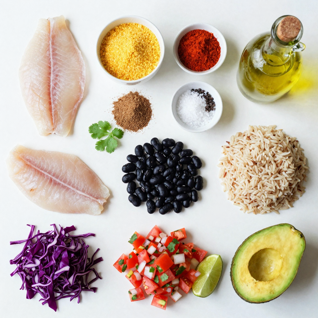 These ingredients come together to make a balanced and vibrant meal. The fish provides protein, while the rice and beans add fiber. The veggies and toppings give freshness and crunch.