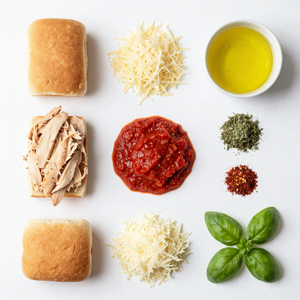 To make Baked Chicken Parmesan Sliders, start with these essential ingredients. Slider rolls are the base, soft and perfect for holding the toppings. Cooked chicken, shredded, provides protein and flavor. Marinara sauce adds moisture and a rich taste. Cheese is key; use mozzarella for meltiness and Parmesan for a salty bite. Seasonings like garlic powder and oregano give depth to the dish.