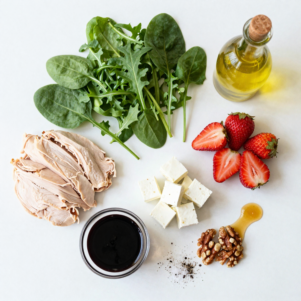 For the Balsamic Strawberry Chicken Salad, gather these fresh ingredients: