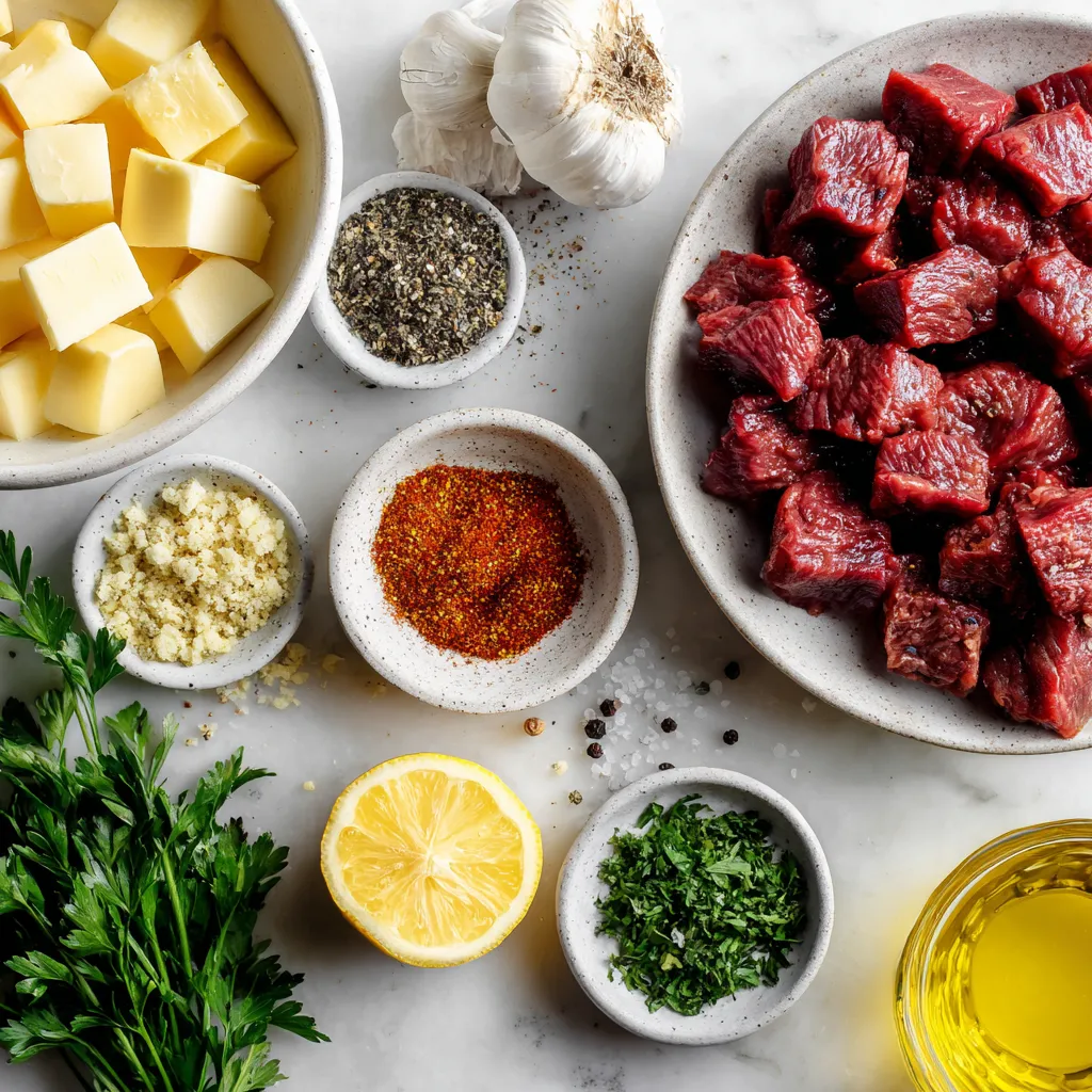 These main ingredients create the heart of the dish. Sirloin steak is tender and flavorful, perfect for quick cooking. The unsalted butter adds richness. Cajun seasoning gives a spicy kick, while garlic and parsley enhance the taste with freshness.