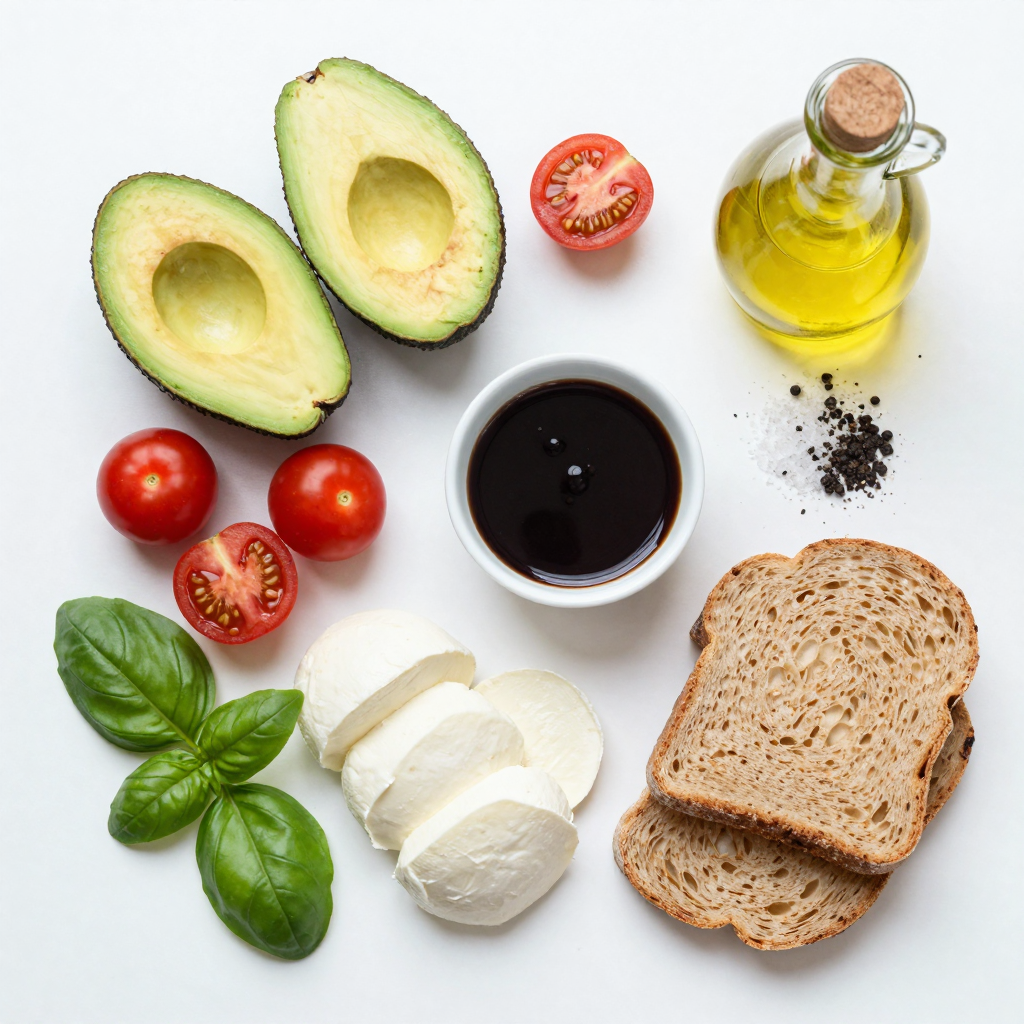 These main ingredients create the heart of your Caprese avocado toast. Ripe avocados give a rich, creamy base. Cherry tomatoes add a sweet and juicy burst. Fresh mozzarella brings a soft, milky flavor that ties it all together.