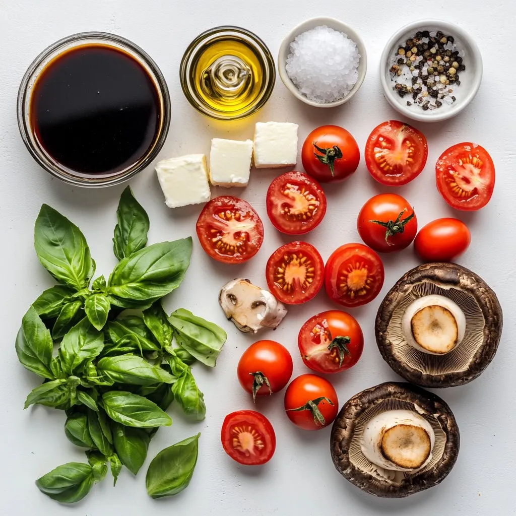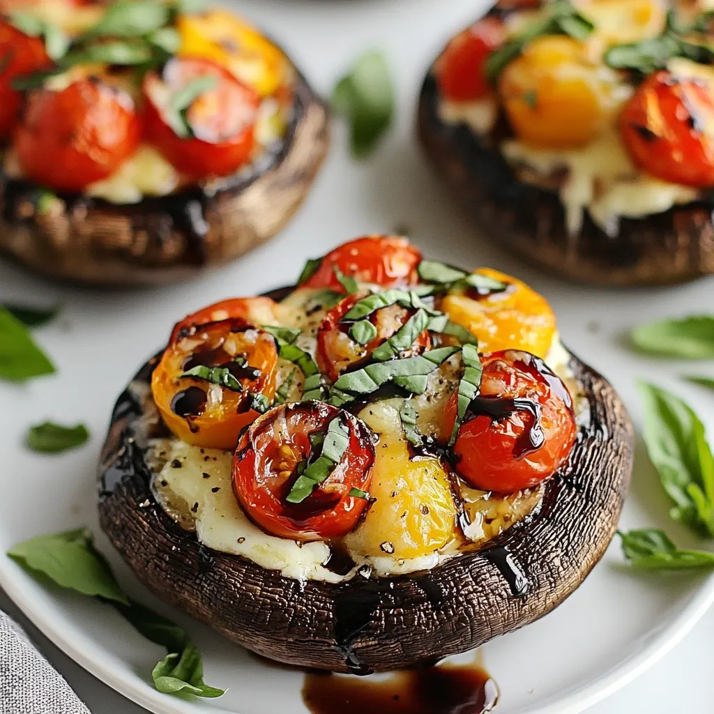 - 4 large portobello mushrooms, stems removed - 2 cups cherry tomatoes, halved - 8 ounces fresh mozzarella cheese, diced - 1/4 cup fresh basil leaves, chopped - 2 tablespoons balsamic glaze - 2 tablespoons olive oil - 1 teaspoon garlic powder - Salt and pepper to taste - 1/4 teaspoon red pepper flakes (optional) When choosing portobello mushrooms, look for ones that are firm and smooth. They should feel heavy for their size. Fresh cherry tomatoes should be bright and firm. Soft spots can mean they are past their best. For mozzarella, use fresh cheese for a creamy texture. If you can't find fresh basil, dried basil can work, but fresh gives better flavor. One serving of Caprese stuffed portobellos has about 230 calories. They are low in carbs and high in protein. Mushrooms are a good source of vitamins and minerals. Mozzarella adds calcium and protein. The dish is also rich in antioxidants from tomatoes and basil. To keep it healthy, use less balsamic glaze or olive oil. This dish is perfect for a light meal or appetizer. {{ingredient_image_1}} Start by setting your oven to 375°F (190°C). This temperature helps the mushrooms cook perfectly. Next, line a baking sheet with parchment paper. This step makes cleanup easy and keeps the mushrooms from sticking. Take 4 large portobello mushrooms and clean them with a damp cloth. This helps remove dirt and keeps them fresh. After cleaning, remove the stems. Place the mushrooms on the baking sheet with the gill-side facing up. This position allows the filling to stay inside. In a mixing bowl, combine 2 cups of halved cherry tomatoes, 8 ounces of diced fresh mozzarella cheese, and 1/4 cup of chopped fresh basil leaves. Add 2 tablespoons of balsamic glaze, 2 tablespoons of olive oil, 1 teaspoon of garlic powder, salt, and pepper to taste. If you like a bit of spice, add 1/4 teaspoon of red pepper flakes. Stir the mixture well until everything is coated nicely. Now, take the Caprese mixture and spoon it generously into each portobello cap. Press down gently to pack the filling, so it holds well during baking. This step ensures each bite is full of flavor. Place the baking sheet in your preheated oven. Bake the stuffed mushrooms for 20-25 minutes. You want the mushrooms to be tender, and the cheese should be bubbly and slightly golden. Once out of the oven, let them cool for a few minutes before serving. For a finishing touch, drizzle with extra balsamic glaze and garnish with more basil leaves. Enjoy your tasty creation! When picking portobello mushrooms, look for large and firm caps. The color should be dark brown and the gills should be clean. Avoid mushrooms with soft spots or wrinkles. Fresh mushrooms smell earthy, not sour. If you can, buy them from a local market. To keep your mushrooms from turning soggy, dry them well before cooking. Use a damp cloth to clean them, but don’t soak them in water. When you fill the mushrooms, pack the ingredients tightly. This helps prevent moisture from escaping during cooking. Baking them at the right temperature is key too. Caprese stuffed portobellos make a great main dish or a side. Serve them on a bed of fresh greens, like arugula or spinach. Drizzle extra balsamic glaze on top for added flavor. Pair these stuffed mushrooms with crusty bread or a light salad for a full meal. You can also add grilled chicken or shrimp for extra protein. Pro Tips Choose Fresh Ingredients: Use the freshest mozzarella and ripe cherry tomatoes for the best flavor. Experiment with Cheese: Try different types of cheese like goat cheese or feta for a unique twist on the classic Caprese flavor. Pre-Season Mushrooms: Brush the portobello caps with olive oil and season before adding the filling for extra flavor. Serve Immediately: Enjoy the stuffed mushrooms right after baking for the best texture and taste. {{image_2}} You can easily make this dish vegan. Swap the fresh mozzarella for vegan cheese. Look for brands that melt well. Use a dairy-free balsamic glaze too. This keeps the flavors bold and fresh. You won't miss the cheese at all. This recipe is already gluten-free! Portobello mushrooms are naturally gluten-free. Just check your balsamic glaze. Some brands add gluten. Always read the labels to ensure your meal is safe. Want to kick up the taste? Add pesto to the filling. It brings a nutty, rich flavor. You can also include fresh spinach for added nutrition. Spinach wilts down nicely when baked. For a spicy twist, toss in more red pepper flakes. Each addition makes this dish even more exciting. Store leftover stuffed mushrooms in an airtight container. Let them cool first. Place a paper towel in the container to absorb moisture. This keeps the mushrooms fresh and tasty. You can store them in the fridge for up to three days. To reheat, preheat your oven to 350°F (175°C). Place the mushrooms on a baking sheet. Cover them loosely with foil to prevent drying. Heat for about 10-15 minutes. This method keeps the cheese gooey and the mushrooms tender. You can also use a microwave. Heat for 1-2 minutes, but the oven gives better results. You can freeze stuffed mushrooms for later. Wrap each mushroom in plastic wrap tightly. Then, place them in a freezer bag. Remove as much air as possible. They can stay frozen for up to three months. When ready to eat, thaw them in the fridge overnight. Reheat them in the oven for the best texture. You can pair Caprese stuffed portobellos with a fresh salad. A simple arugula salad works well. You can also serve them with crusty bread or garlic bread. Pasta with a light sauce makes a great side too. Adding a glass of crisp white wine will enhance the meal. Caprese stuffed portobellos last up to three days when stored properly. Keep them in an airtight container. Make sure they cool to room temperature first. This helps preserve their flavor and texture. Yes, you can prepare them ahead of time. Stuff the mushrooms and store them in the fridge. They will stay fresh for a day or two. Just bake them r