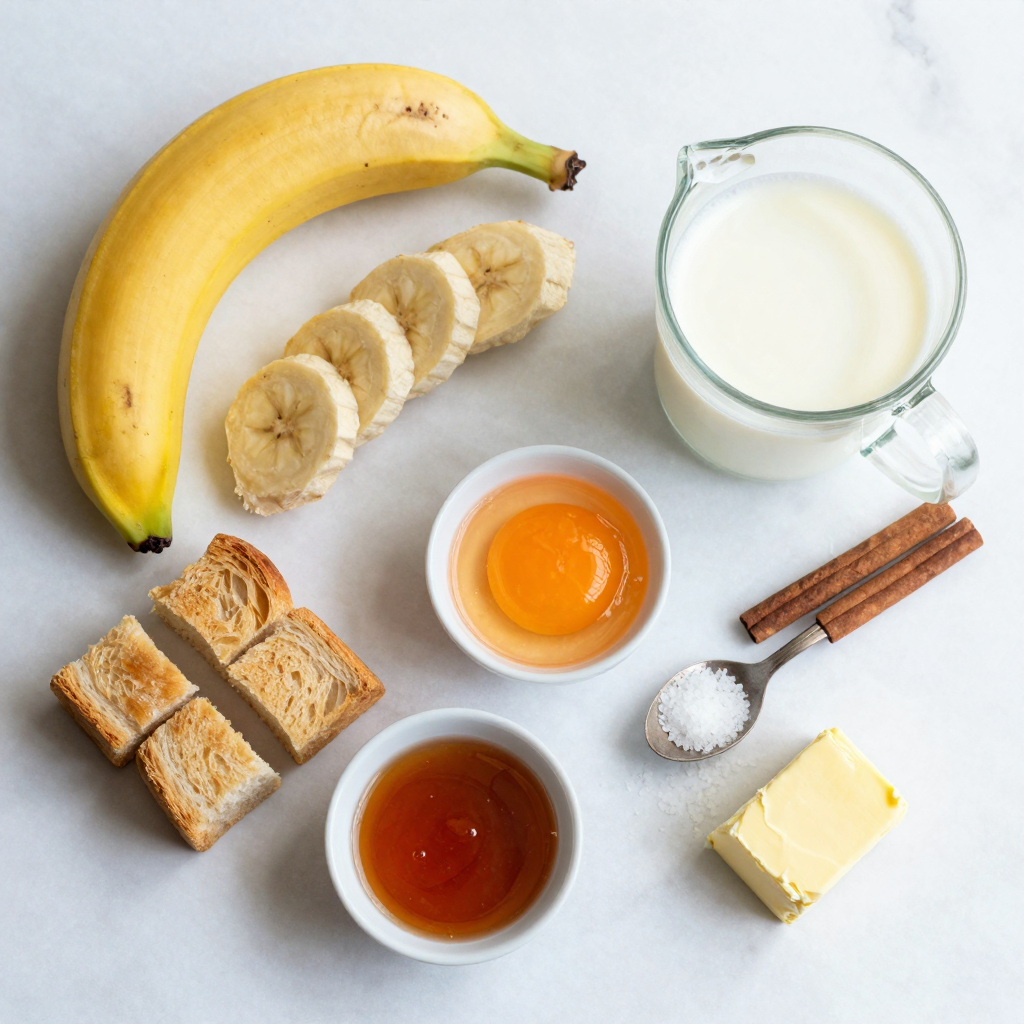 The ingredients for Caramelized Banana French Toast Bake are simple yet flavorful. Stale brioche or challah bread works best. This bread soaks up the custard mix well. Using ripe bananas gives a sweet taste that shines in each bite.