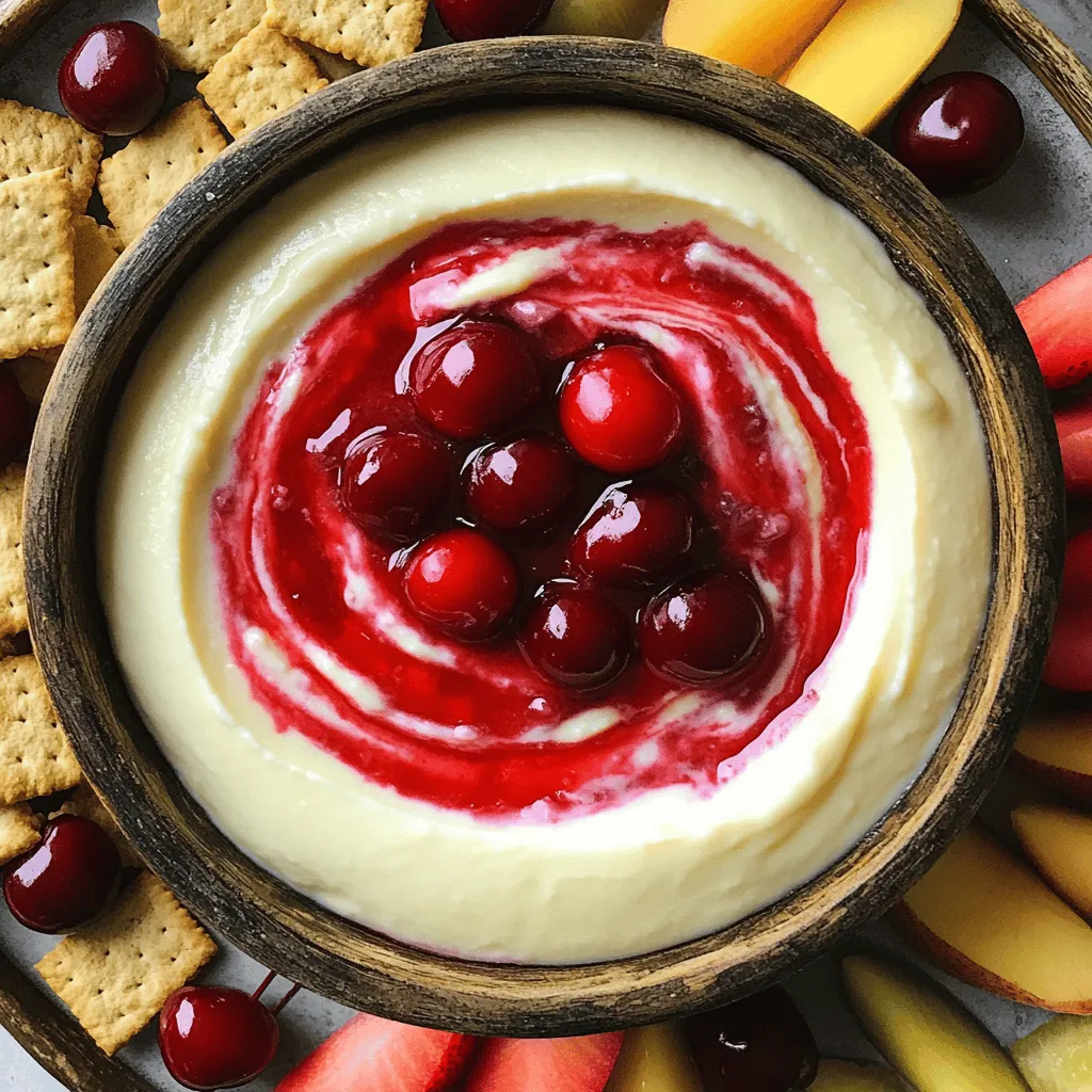 – Presentation Tips: Serve the dip in a colorful bowl surrounded by a platter of graham crackers and fresh fruit slices for dipping. Garnish with a few whole cherries on top for a visually appealing touch.