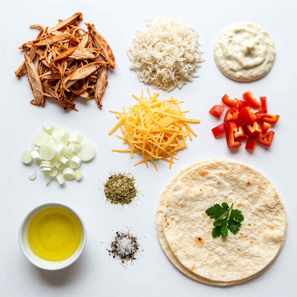 For this Chicken and Rice Skillet Alfredo Quesadilla, you start with simple and delicious ingredients. First, you need cooked chicken. Shred it into small pieces. You can use leftover chicken or roast some fresh. Next, you want rice. White or brown rice works well. It adds a nice base to your quesadilla.