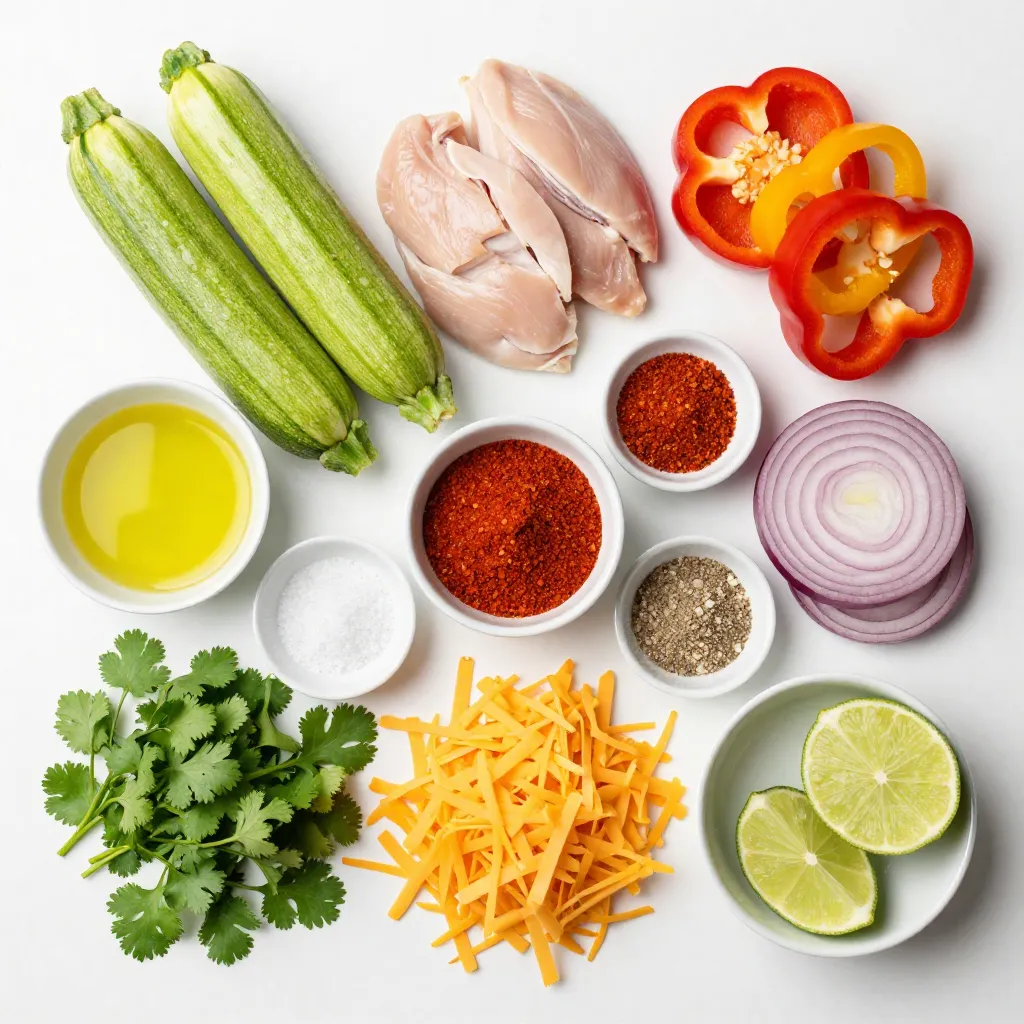 Zucchini is the star here. It has a mild flavor and a nice crunch. When you scoop it out, it makes the perfect boat for the filling. Chicken brings protein to the dish. I prefer boneless, skinless chicken breasts for their lean quality. Bell peppers add sweetness and color, making each bite vibrant. I use both red and yellow for a mix of flavors. The red onion adds depth, with its sharp yet sweet taste. Olive oil helps to cook the chicken and veggies, bringing them together.