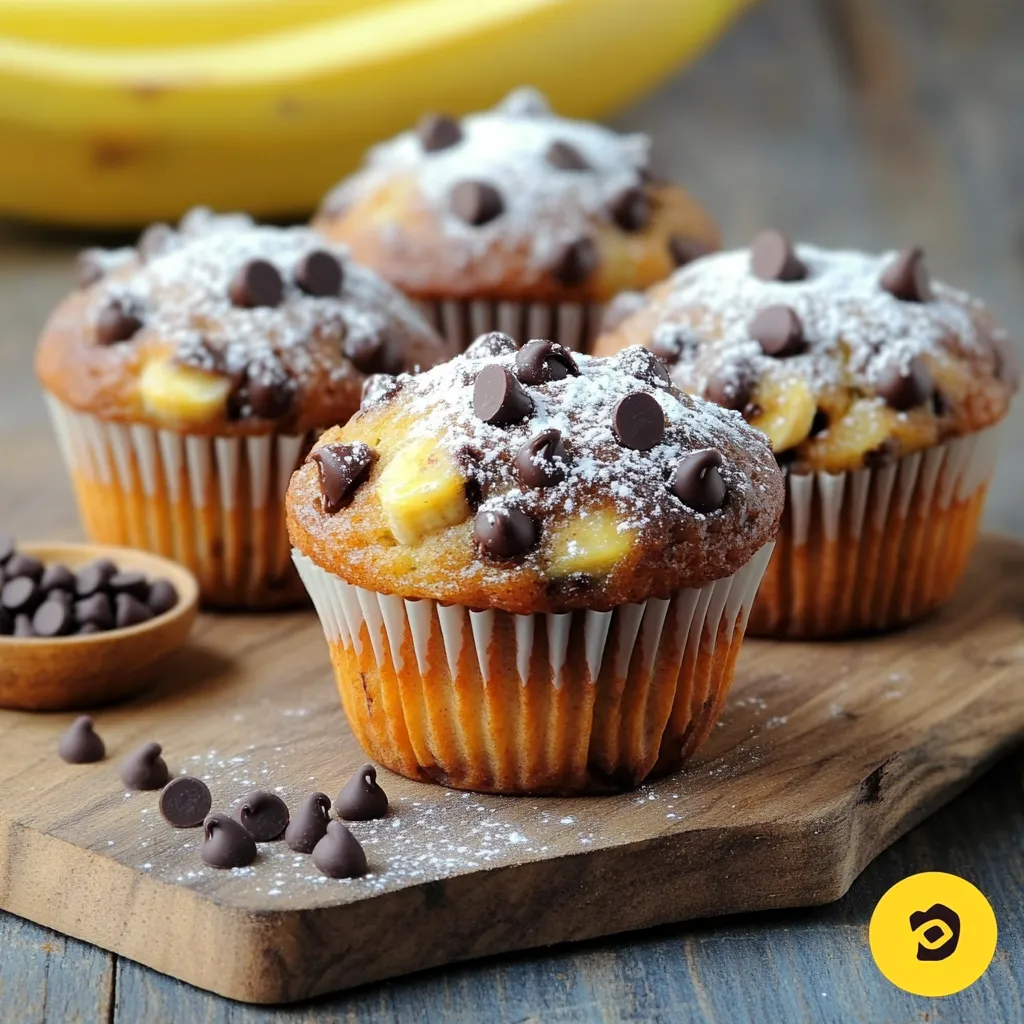 Delicious muffins made with ripe bananas and chocolate chips, perfect for breakfast or a snack.