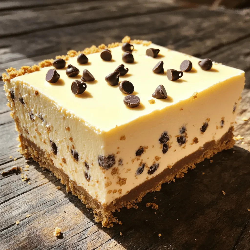 You can skip the oven with a no-bake version. For this, use the same crust. Mix the cookie dough layer as usual. Instead of baking, make a simple cheesecake layer. Blend cream cheese, sugar, and heavy cream until smooth. Fold in mini chocolate chips. Spread it over the cookie dough layer. Chill until firm. This option is quick and just as tasty!