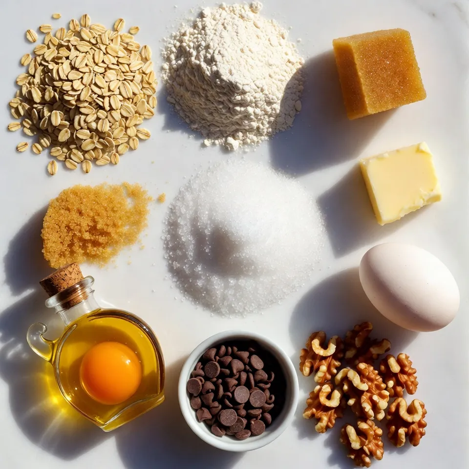 Here are the simple ingredients you need for Chocolate Chip Oatmeal Cookie Bars:
