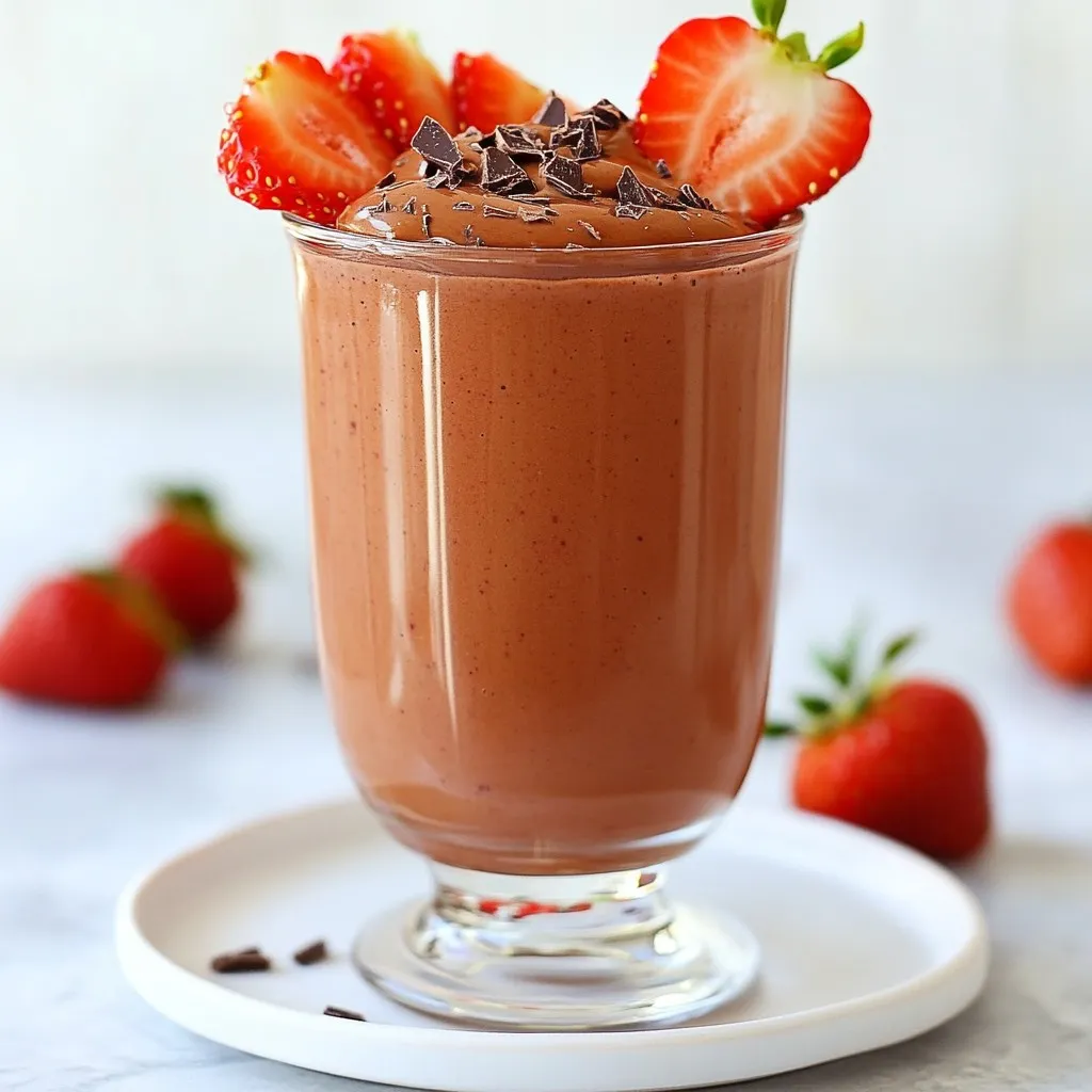 Once your smoothie is blended, it’s time to taste it. If it needs more sweetness, add more honey or syrup. You can also toss in a few ice cubes if you want a colder drink. Blend again until everything is mixed well. Finally, pour the smoothie into a glass. For a fun touch, garnish with fresh strawberry slices on top. Enjoy your chocolate-covered strawberry smoothie!