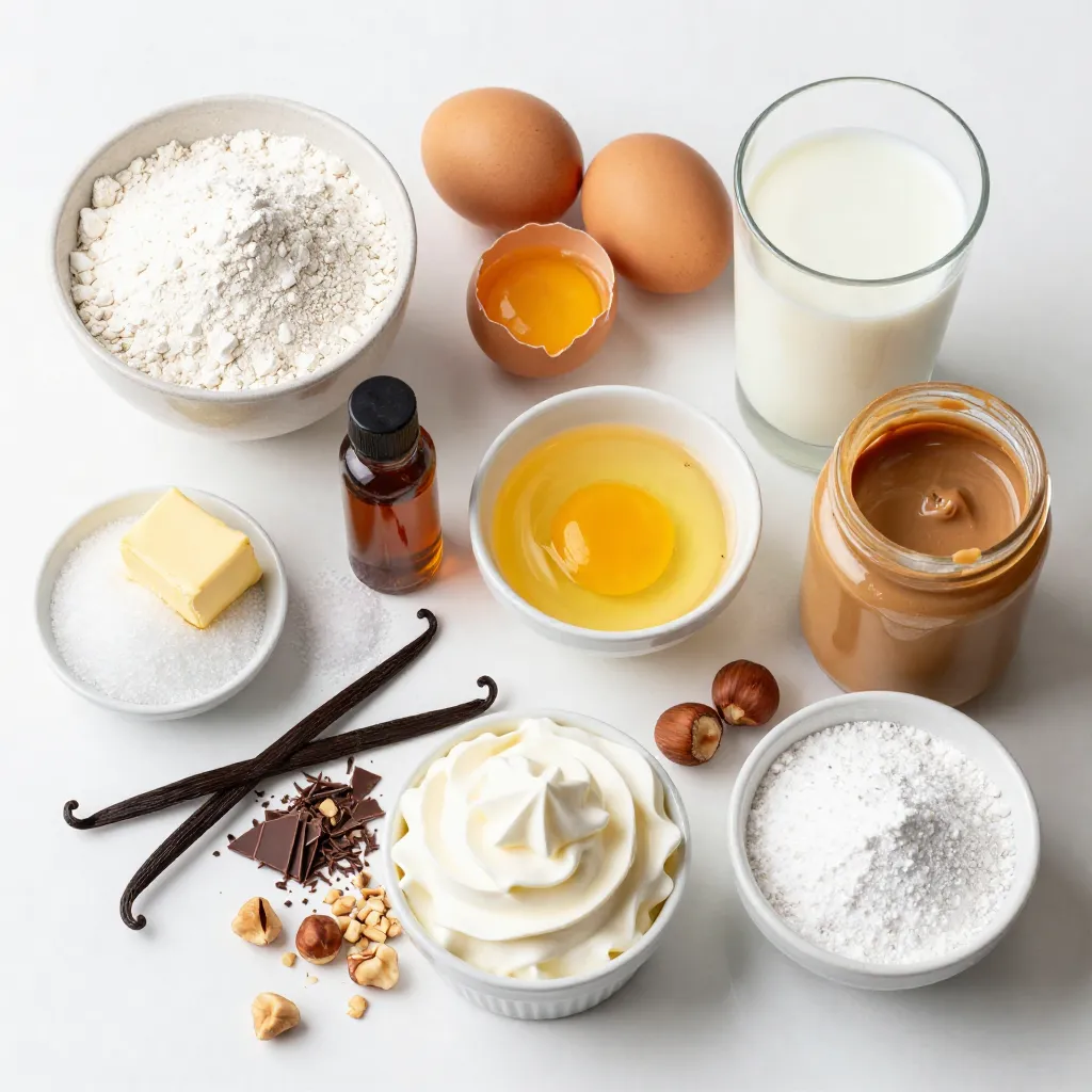 These ingredients work together to create a rich and creamy dessert. The all-purpose flour serves as the base for the crepes. Eggs add structure and richness. Milk creates a smooth batter, while melted butter adds flavor and moisture. Sugar and vanilla give sweetness and aroma.