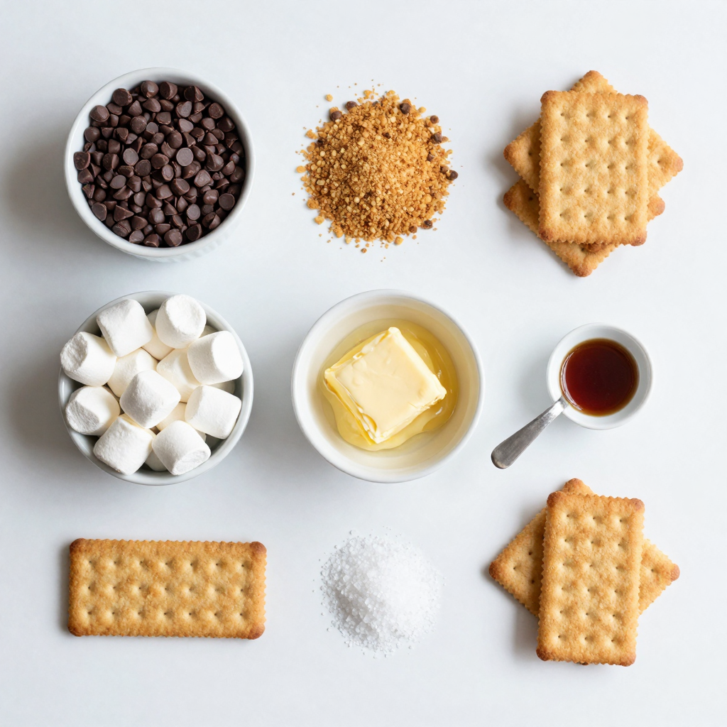 Each ingredient plays a key role. The semi-sweet chocolate chips create a rich base. Mini marshmallows add that classic s’mores flavor and texture. Graham cracker crumbs give us a crunchy crust that holds everything together. Melted butter helps bind the crust and makes it golden. Vanilla extract adds a lovely hint of flavor, while the sea salt enhances all the sweet notes.