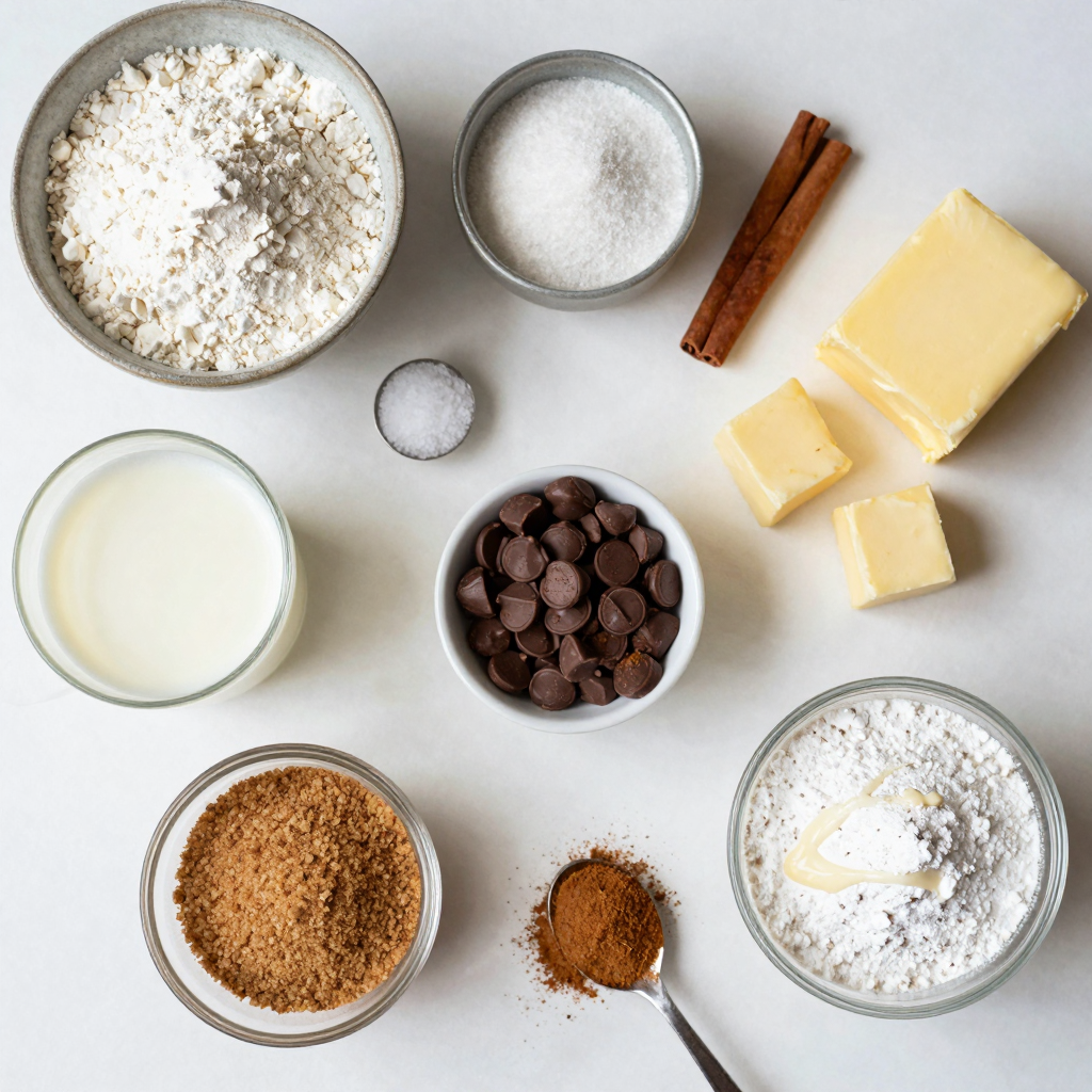 The main ingredients for the scones create a soft and flaky texture. Flour forms the base, while sugar adds sweetness. Baking powder helps the scones rise. Salt enhances flavor, and cinnamon gives warmth. Cold butter is key; it ensures a tender crumb. Buttermilk adds moisture and a slight tang. If you fancy, mini chocolate chips can add a nice touch.