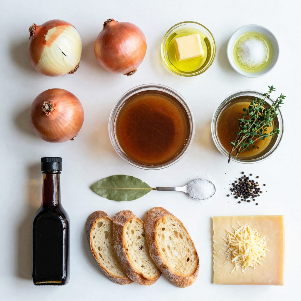 For toppings, you need toasted baguette slices. They soak up the soup and add crunch. Gruyère cheese melts beautifully on top, creating a cheesy layer.