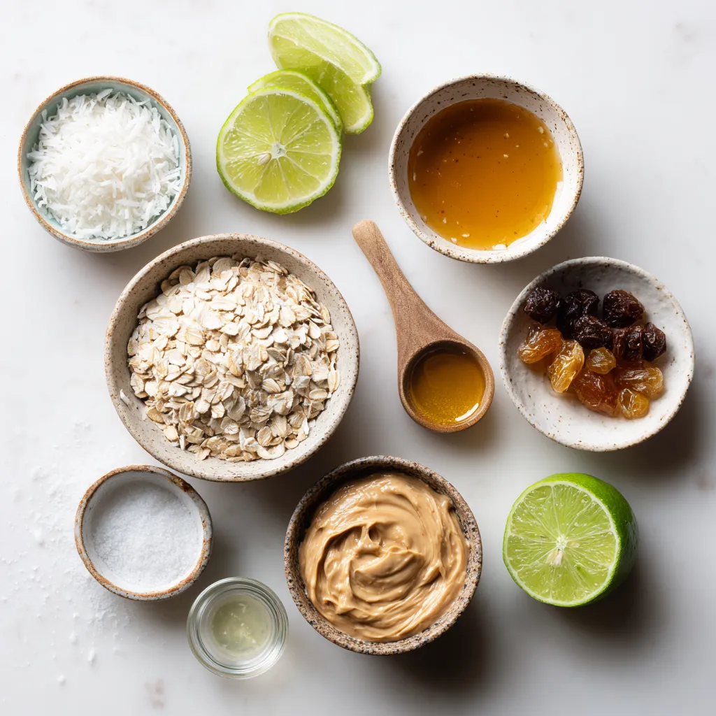 Gathering these ingredients is simple and fun. I love how each one adds to the taste. The rolled oats give a nice base, and the coconut brings a tropical twist. Almond butter is creamy and rich, while honey or maple syrup adds sweetness.