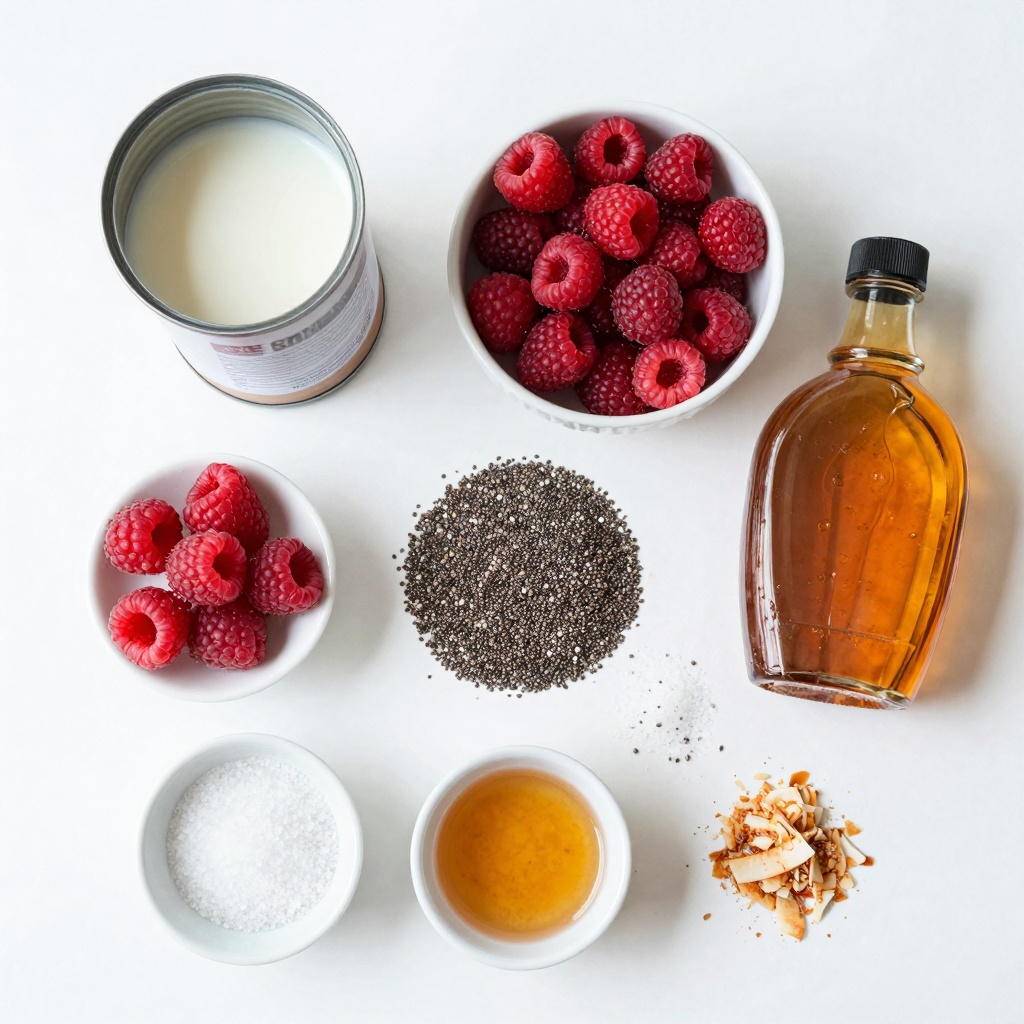 When making Coconut Raspberry Chia Pudding, you need simple and fresh ingredients. Here’s what you will need: