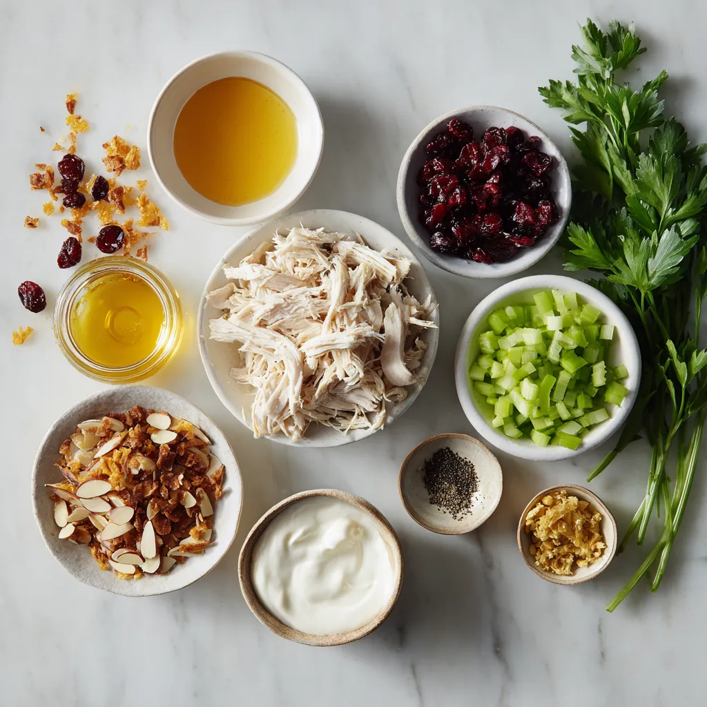 To make a tasty cranberry almond chicken salad, gather these main ingredients: