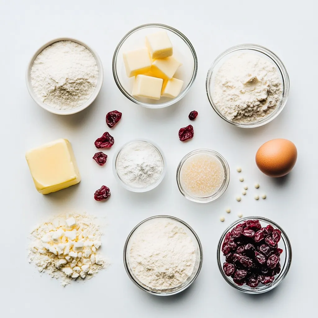 I use all-purpose flour because it gives the scones a nice rise. Granulated sugar adds sweetness, while baking powder helps them puff up. Baking soda and salt enhance the flavors. I love using cold butter for a flaky texture. Buttermilk adds moisture and a slight tang. Dried cranberries give a chewy bite, and white chocolate chips add creaminess. The egg wash gives the scones a golden color.