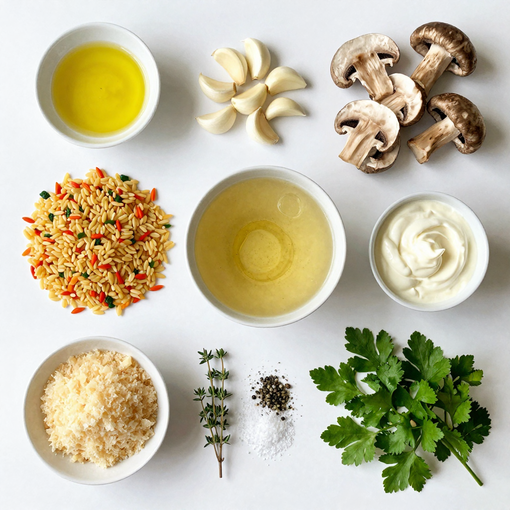 To make creamy garlic mushroom orzo, gather these ingredients: