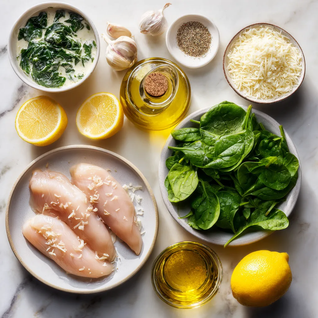 When I make Creamy Garlic Spinach Chicken, I always start with the best ingredients. Fresh chicken breasts are key since they keep the dish moist. I prefer boneless and skinless because they cook evenly.
