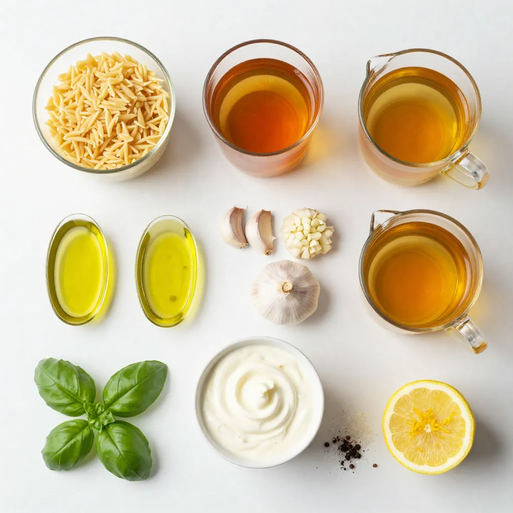 Main Ingredients for Creamy Lemon Garlic Orzo