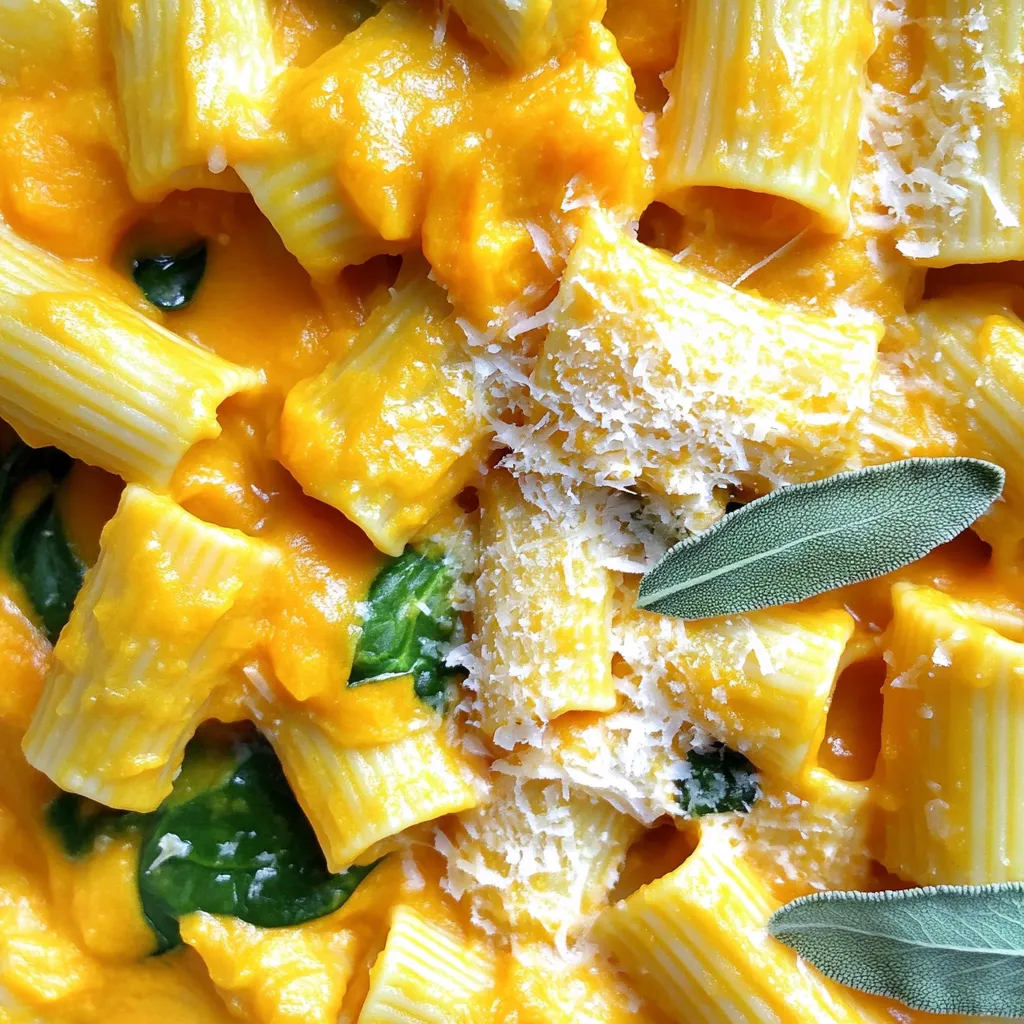 Once you have the perfect sauce, add the cooked rigatoni and 1 cup of baby spinach. Toss everything together until the pasta is well coated. Cook for an additional 2 to 3 minutes until the spinach wilts. Adjust the seasoning with more salt and pepper if needed. Now, your creamy roasted butternut squash rigatoni is ready to serve!