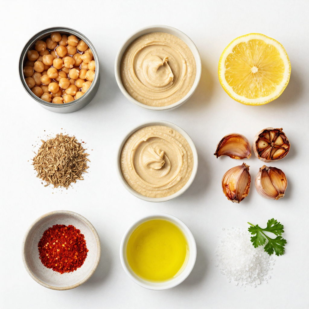 - Blend Ingredients: In a food processor, combine the chickpeas, tahini, lemon juice, roasted garlic cloves (squeezed out of their skins), olive oil, cumin, smoked paprika, and a pinch of salt.