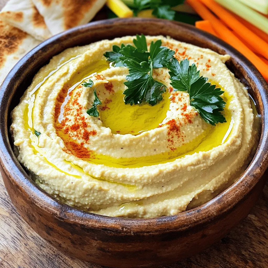 Before serving, let your hummus come to room temperature. This helps bring out its full flavor. If you want to make it richer, add a splash of olive oil. It will enhance the taste and make it even more enjoyable!