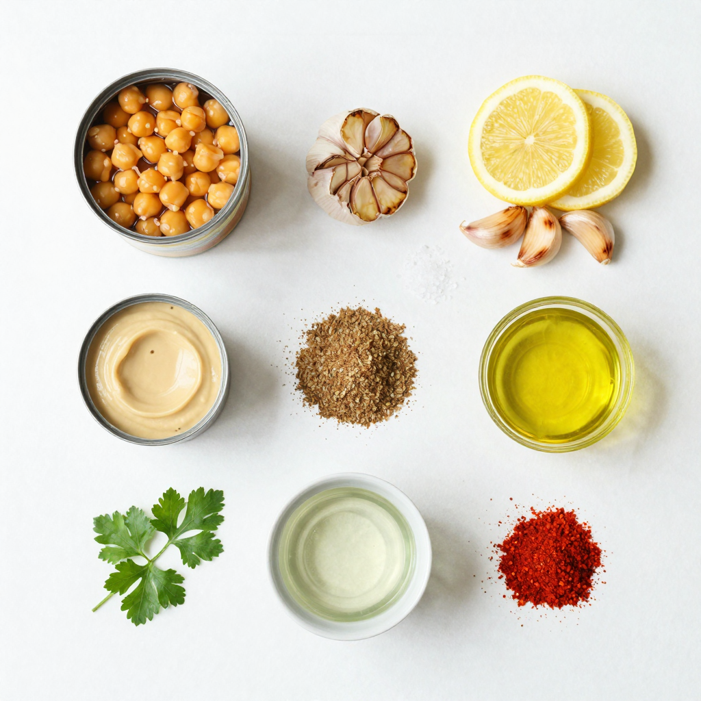 Finally, you may need two to four tablespoons of water. This helps adjust the hummus to your desired creaminess. For a touch of color, use fresh parsley as a garnish. A sprinkle of paprika on top adds a nice finish. With these ingredients, you are ready to create a delicious dip that everyone will enjoy!