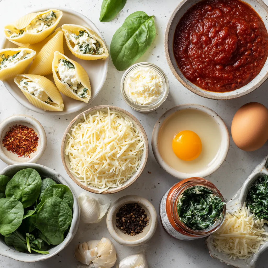When you gather your ingredients for creamy spinach stuffed shells, it’s best to use fresh items. Jumbo pasta shells are key. They hold the creamy filling well. Ricotta cheese gives a rich texture. The mozzarella melts beautifully, while Parmesan adds a sharp bite. Fresh spinach brings both color and nutrition.
