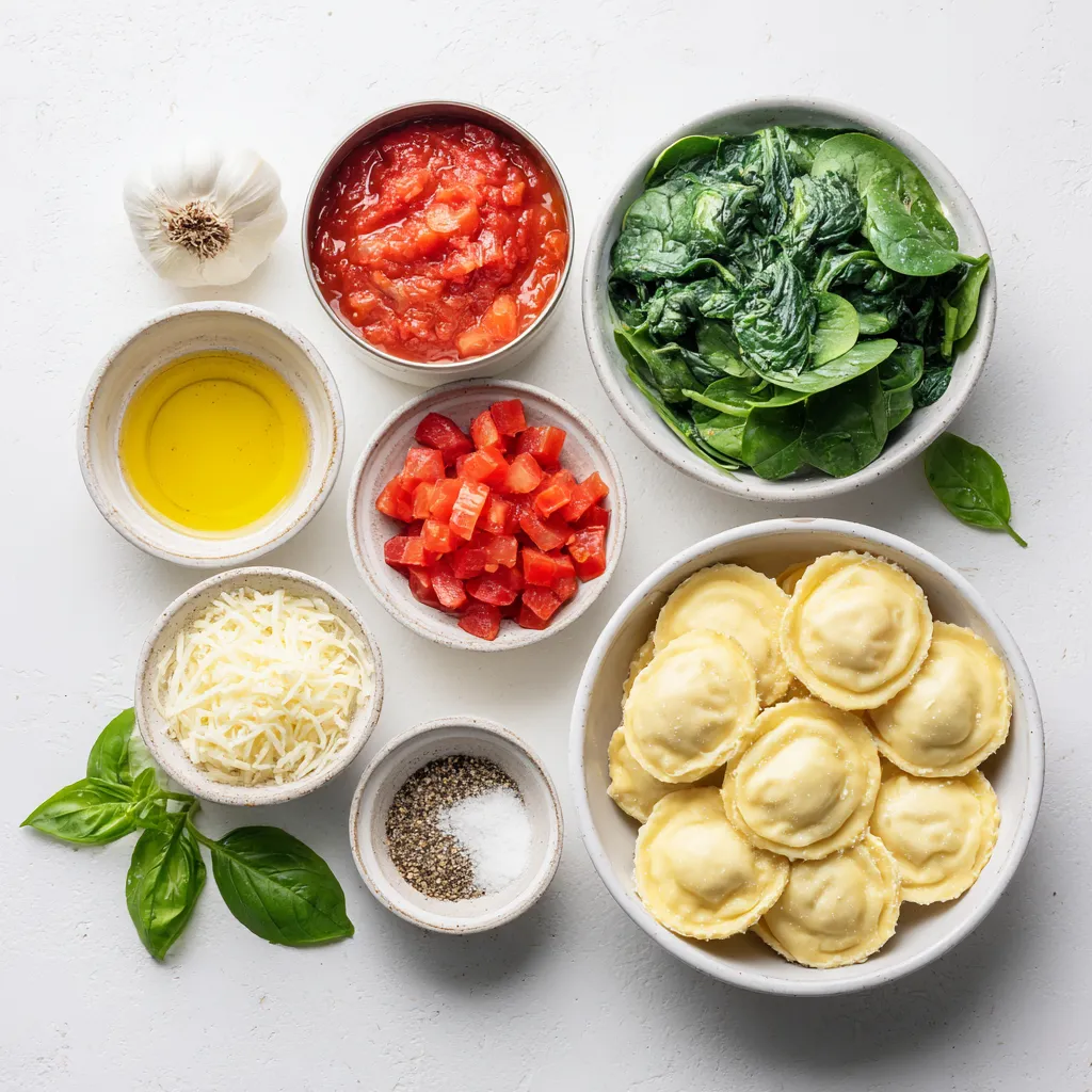 List of Ingredients for Creamy Tomato Spinach Ravioli