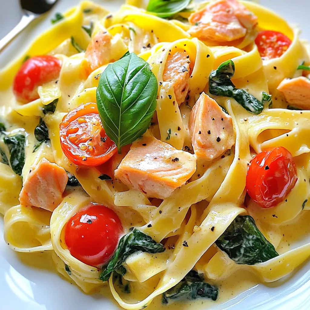 When picking salmon, look for fresh fillets. They should be bright and shiny. The skin can help keep the fish moist while cooking. Farmed salmon works well, but wild salmon has a richer taste. Either choice will make your pasta shine.