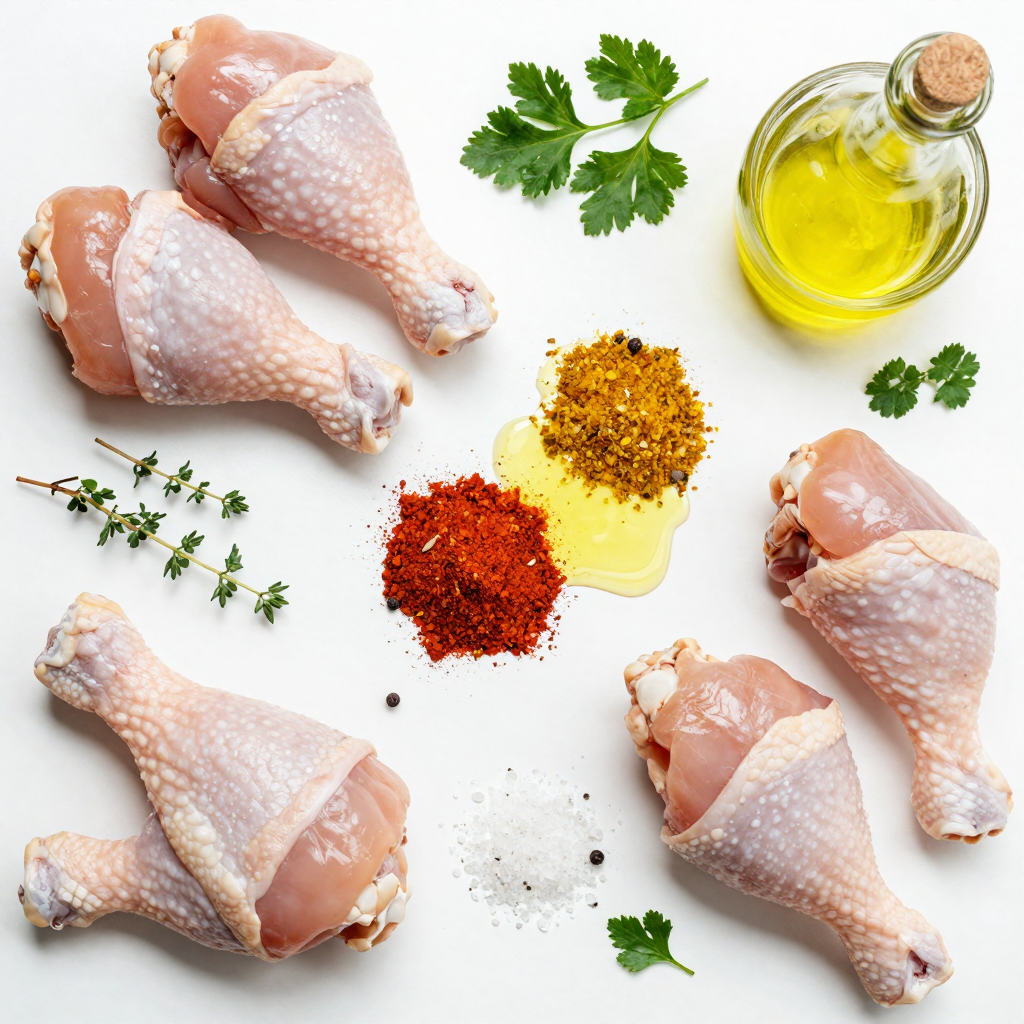 Gather the ingredients for crispy air fryer chicken drumsticks. You will need eight chicken drumsticks, which provide great flavor and texture. Olive oil adds moisture and helps the spices stick. The garlic powder and onion powder boost the flavor significantly. Smoked paprika gives a nice, smoky taste, while oregano adds a hint of earthiness.