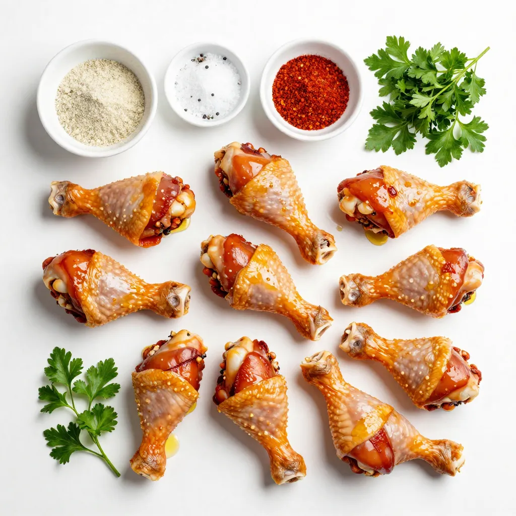 - 8 chicken drumsticks - 2 tablespoons olive oil - 1 teaspoon garlic powder - 1 teaspoon onion powder - 1 teaspoon smoked paprika - 1 teaspoon dried oregano - 1 teaspoon salt - ½ teaspoon black pepper - ½ teaspoon cayenne pepper (optional) - Fresh parsley for garnish Gather the ingredients for crispy air fryer chicken drumsticks. You will need eight chicken drumsticks, which provide great flavor and texture. Olive oil adds moisture and helps the spices stick. The garlic powder and onion powder boost the flavor significantly. Smoked paprika gives a nice, smoky taste, while oregano adds a hint of earthiness. Salt and black pepper are essential for seasoning. If you like heat, add cayenne pepper for a kick. Finally, fresh parsley makes a beautiful garnish. Having these ingredients ready will set you up for success, making your cooking process smooth and fun. {{ingredient_image_1}} Set your air fryer to 400°F (200°C) and preheat it for 5 minutes. Preheating helps make the chicken skin crispy. If you skip this step, the chicken might not cook evenly. In a large bowl, mix together 2 tablespoons of olive oil, 1 teaspoon of garlic powder, 1 teaspoon of onion powder, 1 teaspoon of smoked paprika, 1 teaspoon of dried oregano, 1 teaspoon of salt, ½ teaspoon of black pepper, and ½ teaspoon of cayenne pepper if you like it spicy. Stir well to combine. This mix gives the chicken a tasty kick. Add the 8 chicken drumsticks to the bowl with the spice mix. Toss them until each drumstick is coated evenly. Make sure every piece gets some spice. This step is key for great flavor. Place the coated drumsticks in the air fryer basket in a single layer. Make sure they are not overcrowded. This helps them cook evenly. Cook the chicken at 400°F (200°C) for 25-30 minutes. Flip them halfway through. Check that they reach an internal temperature of 165°F (75°C) for safe eating. Once the drumsticks are done, take them out and let them rest for 5 minutes. This helps keep them juicy. Before serving, sprinkle some freshly chopped parsley on top for a bright touch. Enjoy your crispy air fryer chicken drumsticks! To get that perfect crispy skin, follow a few smart tips. First, I always preheat my air fryer to 400°F (200°C) for about 5 minutes. This step is key for crispiness. Next, I use olive oil for coating the drumsticks. It's great for flavor and helps the skin crisp up nicely. One big mistake is overcrowding the air fryer basket. When you put too many drumsticks in, they won’t cook evenly. Always leave some space. Another common issue is not preheating the air fryer. Skipping this makes it harder to get that crispy texture. To spice things up, I love adding marinades or extra spices. Try mixing in some hot sauce or a splash of soy sauce for a kick. For side dishes, I recommend serving the drumsticks with a fresh salad or some roasted veggies. These pair well and add color to your plate. Pro Tips Brining for Juiciness: Soak the chicken drumsticks in a saltwater brine for a few hours before cooking. This helps to keep the meat juicy and flavorful. Use a Meat Thermometer: To ensure your chicken is cooked perfectly, use a meat thermometer. The internal temperature should reach 165°F (75°C) for safe consumption. Don't Skip the Resting Time: Allow the drumsticks to rest for at least 5 minutes after cooking. This helps the juices redistribute, keeping the meat tender. Experiment with Spices: Feel free to personalize the spice mix. Adding different herbs or spices like cumin or chili powder can create unique flavor profiles. {{image_2}} You can easily switch up the flavors of your crispy air fryer chicken drumsticks. For a spicy kick, add more cayenne or a splash of hot sauce to the spice mix. This heat level can suit your taste. If you love herbs, try an herb-crusted version. Use dried herbs like thyme, rosemary, or basil. The herbs will add great depth and aroma to your dish. While the air fryer gives you that crispy skin, you can also bake these drumsticks. Preheat your oven to 425°F (220°C). Arrange the seasoned drumsticks on a baking sheet and bake for about 35-40 minutes. Flip them halfway for even cooking. If you want to grill, this is great for summer. Preheat your grill to medium-high heat. Cook the drumsticks for about 25-30 minutes, turning often, until they reach 165°F (75°C) inside. Dipping sauces can really elevate your meal. Try honey mustard, ranch, or barbecue sauce. These flavors pair well with the crispy chicken. You can also serve drumsticks with sides like a fresh salad or roasted veggies. These add color and nutrition to your plate. Enjoy your meal with family or friends for a fun dinner! To keep your leftover drumsticks fresh, refrigerate them promptly. Place the drumsticks in an airtight container. This helps prevent them from drying out. You can also wrap them tightly in plastic wrap. They should stay good for up to four days in the fridge. For the best results, reheat your drumsticks in an air fryer. Set the air fryer to 375°F (190°C). Heat them for about 10-15 minutes. This method keeps the skin crispy and juicy. You can also use a conventional oven at 350°F (175°C) for about 20 minutes. Check that they reach an internal temperature of 165°F (75°C) for safety. If you want to save your drumsticks for later, freezing works great. Allow them to cool completely first. Then, wrap each drumstick in plastic wrap. Place the wrapped drumsticks in a freezer bag. Squeeze out as much air as possible. They can be frozen for up to three months. When you’re ready to eat them, thaw the drumsticks in the fridge overnight. For quick thawing, place them in a sealed bag under cold water. Then, reheat as described above for the best taste and texture. Cook chicken drumsticks for 25-30 minutes at 400°F (200°C). Flip them halfway through to ensure even cooking. To check for crispiness, look for golden skin. Use a meat thermometer to check the internal temperature. Yes, you can use frozen chic