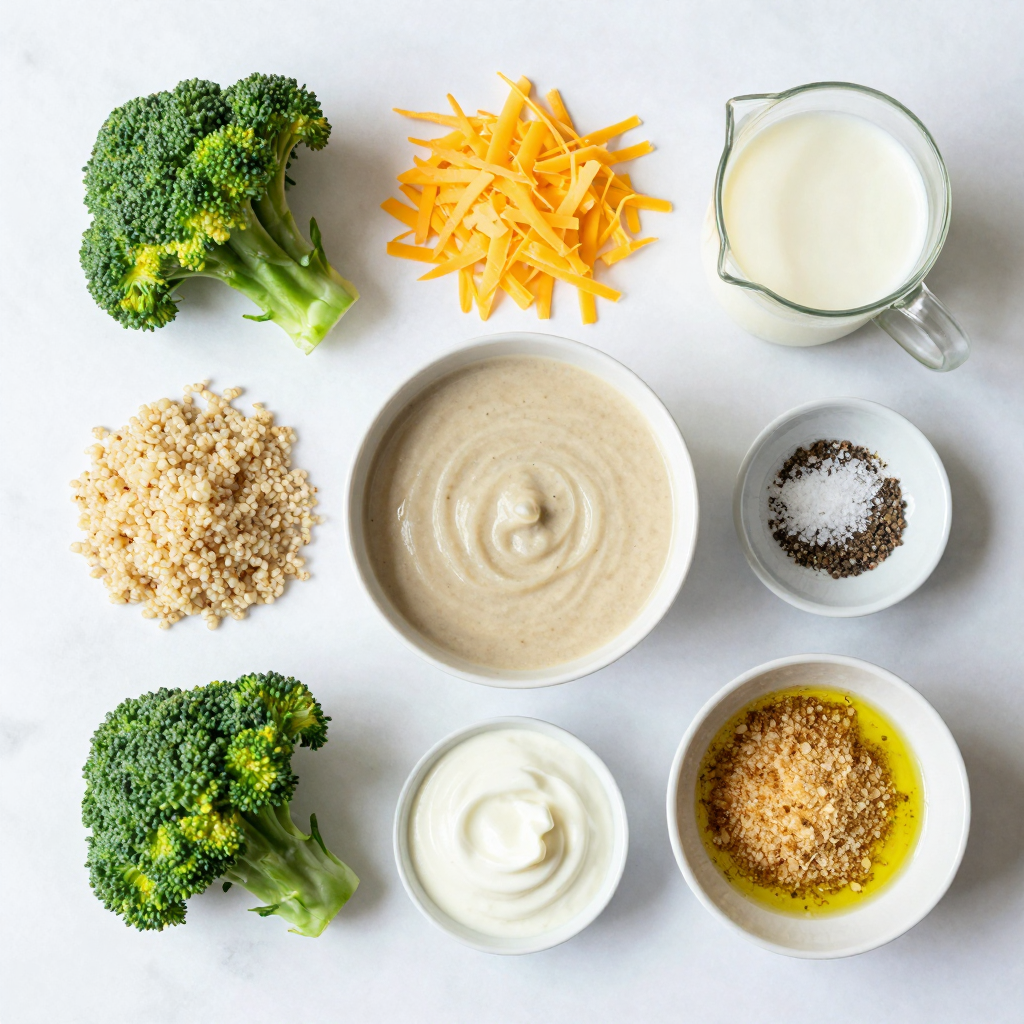 Fresh broccoli florets give this dish its bright color and crunch. I like using cooked quinoa for a boost of protein. It makes the casserole more filling. The shredded cheddar cheese melts beautifully, adding a rich, creamy layer. Cream of mushroom soup is the secret to a dreamy texture. Milk and sour cream make everything extra smooth.