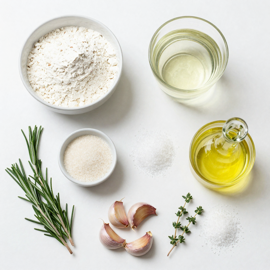 Gathering the right ingredients is key for your focaccia. Start with all-purpose flour for a soft base. Warm water helps activate yeast, which gives rise. Sugar feeds the yeast, while salt adds flavor. Olive oil brings moisture and richness.