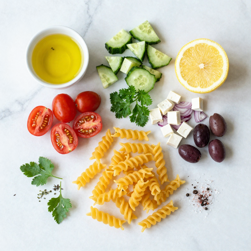 Main Ingredients for Easy Greek Pasta Salad