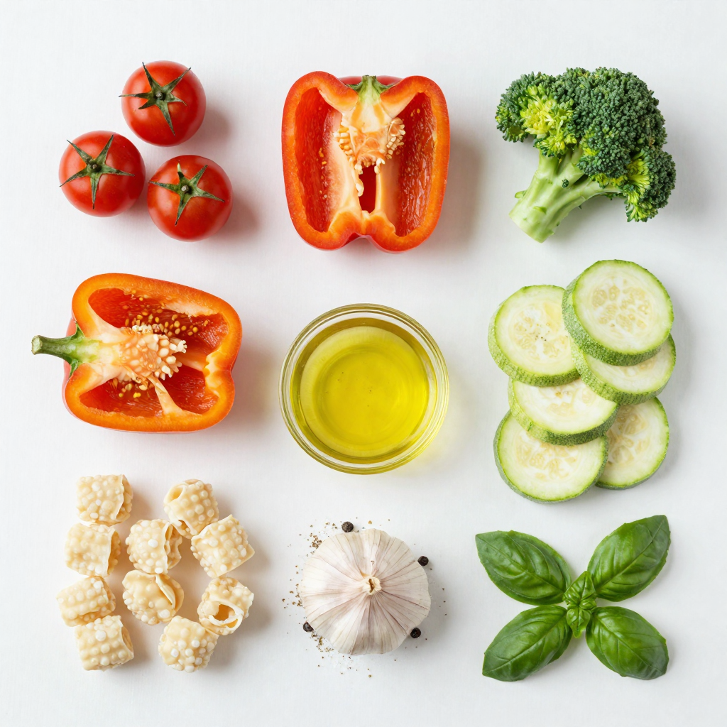 When picking your vegetables, look for bright colors and firm textures. Choose cherry tomatoes that feel heavy for their size. For peppers, select ones without blemishes. The zucchini should be smooth and shiny. Broccoli should have tight florets and a deep green color. Fresh basil should smell strong and have vibrant leaves. Always wash your produce before cooking to keep it clean and safe.