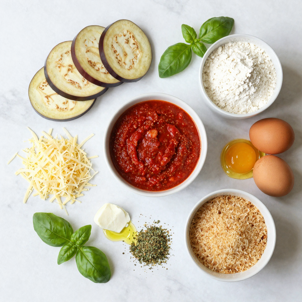 ![- Eggplants: You need 2 medium eggplants. Slice them into 1/4-inch rounds. This helps them cook evenly. - Marinara Sauce: Use 2 cups of marinara sauce. You can make it fresh or use store-bought. It adds rich flavor. - Cheese Types: You will need 2 cups of shredded mozzarella cheese and 1 cup of grated Parmesan cheese. These cheeses melt well and create a creamy texture. - Breading Components: Gather 1 cup of all-purpose flour, 3 large eggs (beaten), and 2 cups of breadcrumbs. Italian-style breadcrumbs add great taste. - Seasonings and Garnish: Use 1 teaspoon of dried oregano and 1 teaspoon of garlic powder. These spices boost the flavor. For garnish, fresh basil leaves add color and freshness. Don’t forget olive oil for frying and salt and pepper for taste. With these ingredients, you will create a layered delight that is both tasty and satisfying. For the complete recipe, check the Full Recipe section. Preparing the Eggplant First, slice your eggplants into 1/4-inch rounds. Lay them on a clean towel. Sprinkle salt over the slices and let them sit for 30 minutes. This helps draw out moisture and bitterness. After 30 minutes, rinse the eggplants and pat them dry with a paper towel. This step is key for tasty eggplant. Setting Up a Breading Station Now, gather three bowls for breading. In the first bowl, add all-purpose flour. In the second bowl, beat three large eggs. In the third bowl, mix breadcrumbs with one teaspoon of dried oregano, one teaspoon of garlic powder, salt, and pepper. This setup speeds up the process and keeps things neat. Frying the Eggplant Heat olive oil in a large skillet over medium heat. Take each eggplant slice and dip it into the flour, shaking off excess. Next, dip it into the beaten eggs, then coat it well with the breadcrumb mix. Fry the breaded slices in batches until they turn golden brown and crisp. This should take about 3-4 minutes on each side. Once done, drain them on paper towels to remove extra oil. Assembling the Layers Grab a greased baking dish to start layering. Spread a thin layer of marinara sauce on the bottom. Place a third of the fried eggplant slices over the sauce. Add half of the marinara sauce on top, followed by a third of the mozzarella cheese and half of the Parmesan cheese. Repeat these layers. Finish with a final layer of eggplant, then top it off with the remaining marinara sauce and cheeses. Baking Directions Preheat your oven to 375°F (190°C). Cover the baking dish with foil and bake it for 25 minutes. After that, remove the foil and bake it for another 15-20 minutes. You want the cheese to be bubbly and golden brown. Resting Time Once the baking is done, let the Eggplant Parmesan rest for about 10 minutes. This helps it set and makes it easier to serve. Enjoy the delicious layers of flavor and texture! If you want the full recipe, check the [Full Recipe]. Drawing Out Moisture To make your eggplant perfect, start by drawing out moisture. Slice the eggplants into 1/4-inch rounds. Lay them on a clean towel and sprinkle salt over them. Let them sit for about 30 minutes. This step helps to reduce bitterness and makes them less soggy. After 30 minutes, rinse and pat them dry with a paper towel. This process is key for a great texture. Achieving Optimal Crispiness For a crispy texture, make sure to coat the eggplant well. First, dip each slice in flour, then in beaten eggs, and finally in breadcrumbs. Use Italian-style breadcrumbs for extra flavor. Fry them in hot olive oil until they are golden brown. Frying in batches helps keep the oil hot. This step ensures every piece of eggplant turns out crispy and delicious. Pairing with Side Dishes Eggplant Parmesan pairs well with many sides. A fresh green salad with a lemon vinaigrette adds brightness. Garlic bread brings a nice crunch and flavor. You can also serve it with pasta for a hearty meal. These sides complement the rich flavors of the dish. Presentation Ideas For a beautiful presentation, layer your Eggplant Parmesan in a clear dish. This way, people can see the colorful layers. Garnish with fresh basil leaves on top for a pop of color. You can also drizzle some extra marinara sauce around the plate. This makes it look elegant and inviting. Over-salting the Eggplant Be careful with salt when preparing eggplant. While salting helps draw out moisture, too much salt can ruin the dish. Always taste the eggplant after rinsing. Adjust the salt in your marinara sauce to balance flavors. This way, you avoid a salty dish. Incorrect Layering Order When assembling the layers, follow the right order. Start with marinara sauce, then eggplant, and then cheese. Repeat this pattern. If you mix up the layers, the dish may not cook evenly. Following the proper layering keeps everything in place and ensures a tasty meal. {{image_2}} Substitutes for Cheese You can use plant-based cheese. Look for nut-based or soy-based options. They melt well and add flavor. Nutritional yeast is a great choice too. It adds a cheesy taste without dairy. Egg Replacement Options If you want to skip eggs, try using flaxseed meal. Mix one tablespoon of flaxseed with three tablespoons of water. Let it sit for five minutes. This mix works well as a binder. Gluten-Free Breadcrumbs You can find gluten-free breadcrumbs at stores. They are made from rice or corn. They work just like regular breadcrumbs, giving you that nice crunch. Flour Options Instead of all-purpose flour, use almond flour or chickpea flour. Both options give a nutty flavor and work well in the recipe. Adding Vegetables Add layers of zucchini or spinach for more taste. They boost nutrition and add color to the dish. You can also mix in roasted red peppers for a sweet twist. Using Different Sauces Besides marinara, try pesto or a white sauce. Each sauce brings a new flavor. This keeps the dish fresh and exciting. You can even mix sauces for a unique taste. How do you store leftovers? After enjoying your Eggplant Parmesan, let it cool to room temperature. P