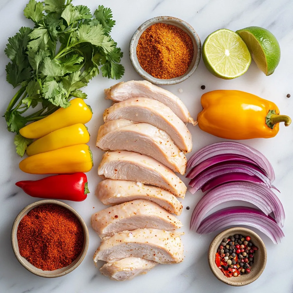 These main ingredients form the heart of your fajitas. The chicken adds protein, while the peppers and onion bring color and crunch.