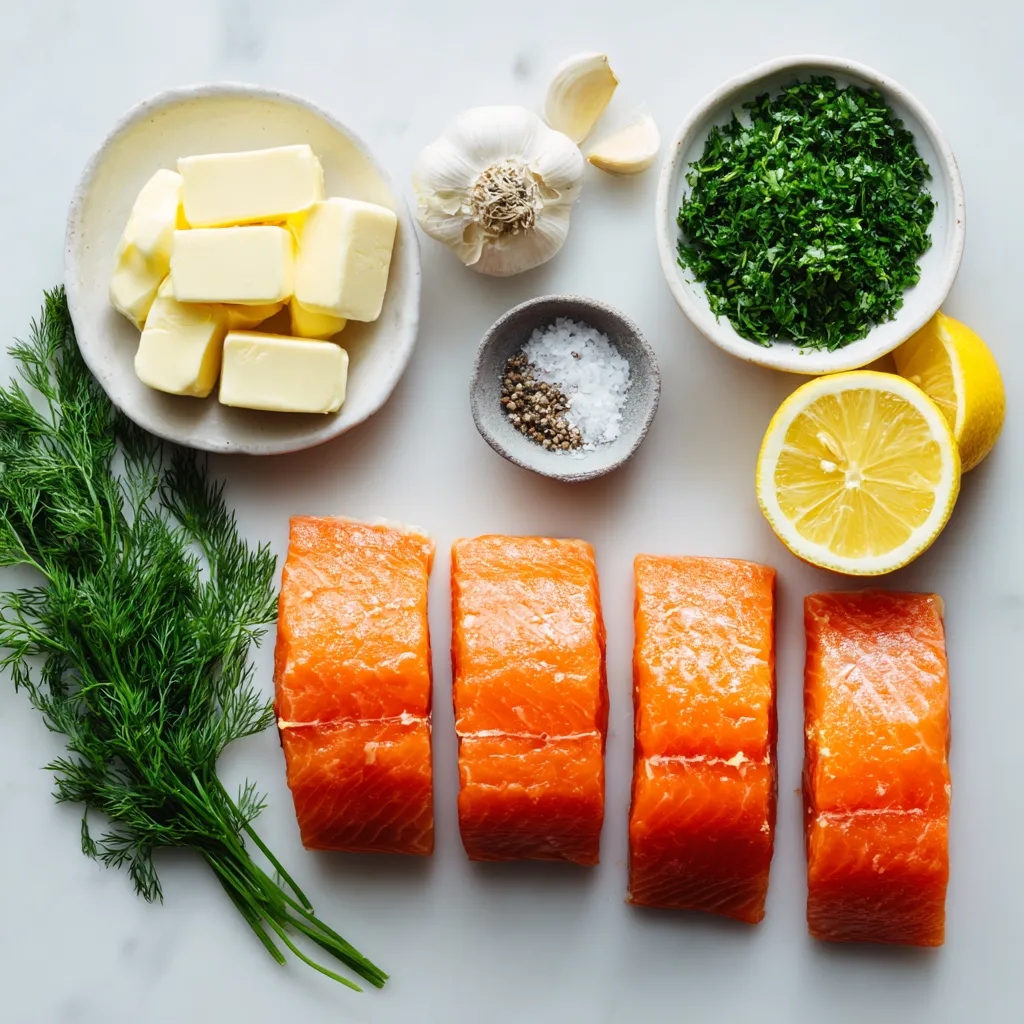 To make garlic herb butter salmon, you need fresh ingredients. The salmon fillets are the star. Choose fillets that are firm and bright in color. Next, you will need unsalted butter. This butter adds richness and helps the flavors shine. Garlic is a must for this recipe. It gives a bold taste that pairs well with salmon. Fresh herbs bring a lovely touch. Parsley and dill add bright notes. Don’t forget the lemon juice. It adds acidity and freshness to the dish. Finally, use salt and pepper to enhance all the flavors. Lemon slices work great as a garnish. They make the dish look pretty and add extra zing.