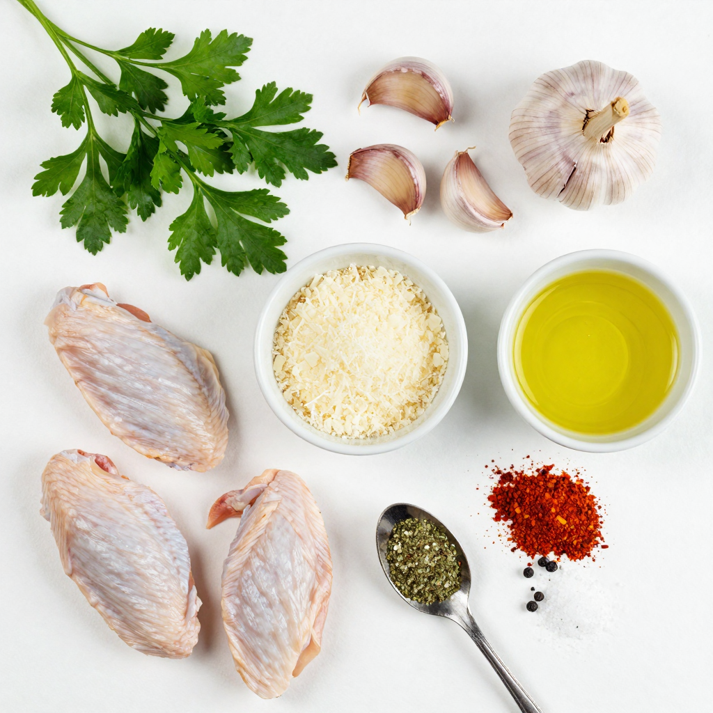 To make Garlic Parmesan Air Fryer Wings, you need fresh and simple ingredients. Here’s what you’ll need:
