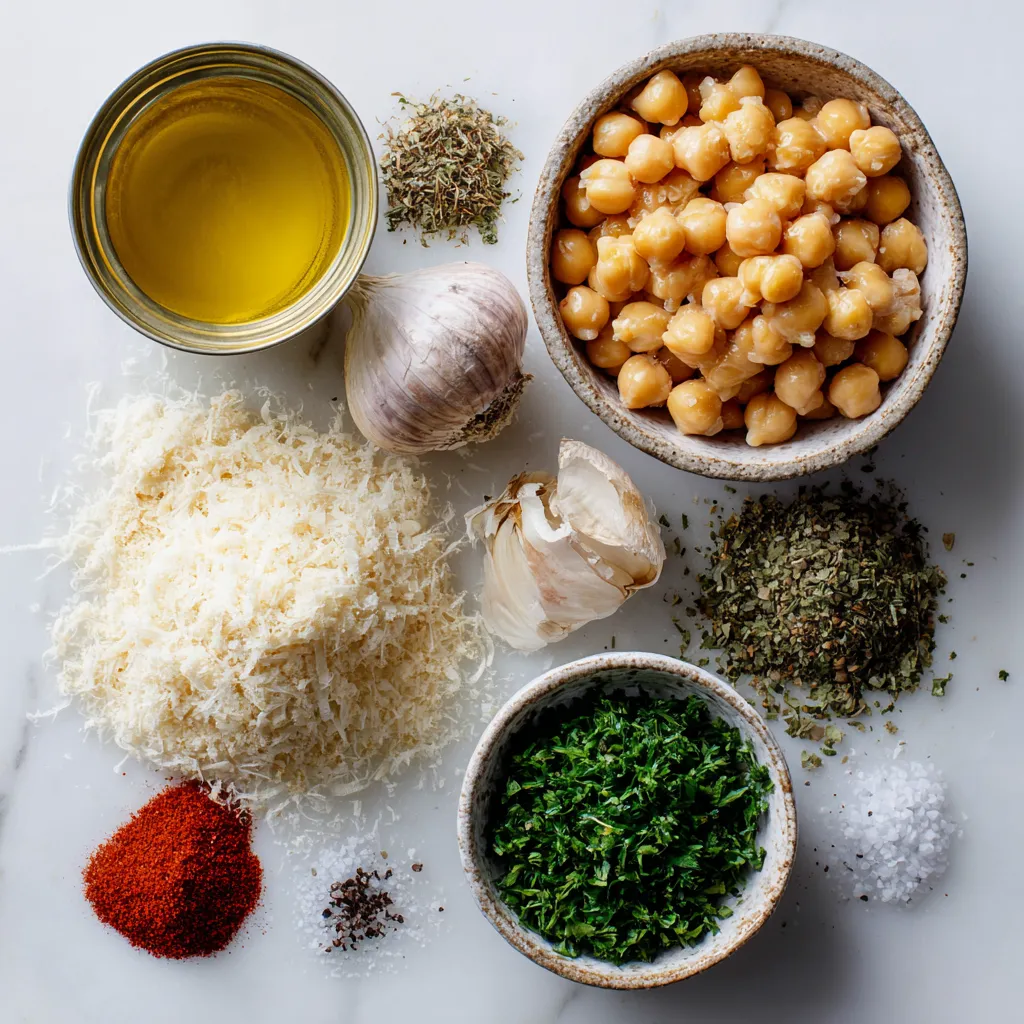 When you gather your ingredients, start with the chickpeas. A 15-ounce can works best. Drain and rinse them well. This helps remove any extra salt. Next, grab some olive oil and three cloves of garlic. Mince the garlic finely for a strong flavor. You will also need half a cup of grated Parmesan cheese for that cheesy goodness.