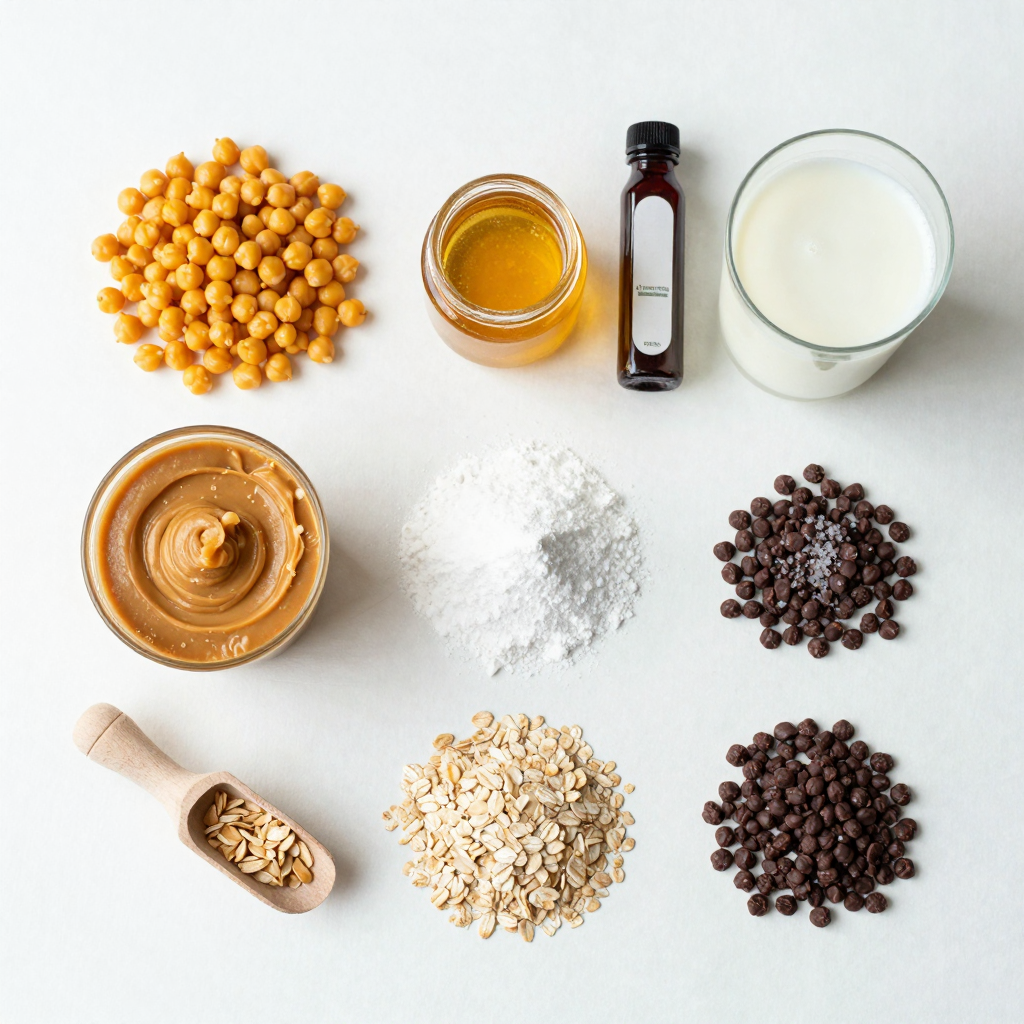 To start, gather your ingredients. You need chickpeas, peanut butter, honey, vanilla, baking soda, and salt. Place them all in a food processor. Blend until it is smooth. Scrape the sides as you blend. This helps mix everything well. If the mix feels too thick, add milk. Do this a little at a time. Blend until you reach the creaminess you like.