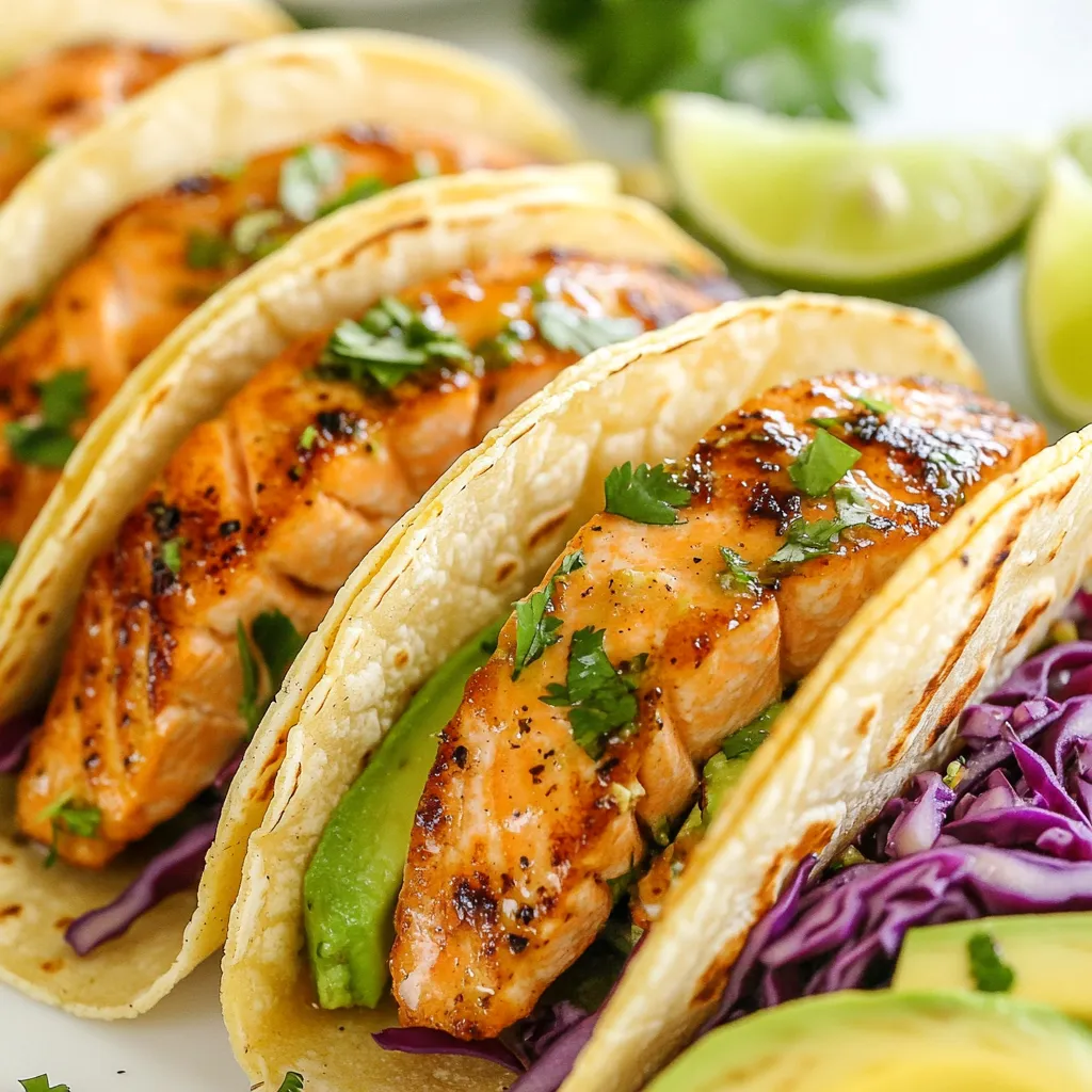 - 2 salmon fillets (6 oz each) - 2 tablespoons honey - 2 tablespoons lime juice - 1 teaspoon chili powder - 1 teaspoon garlic powder - Salt and pepper to taste - 4 small corn tortillas - 1 avocado, sliced - 1 cup red cabbage, thinly sliced - Fresh cilantro, for garnish - Lime wedges, for serving To make honey lime salmon tacos, you need fresh ingredients. Start with salmon fillets. They should be about 6 ounces each. This size cooks well and flakes easily. Next, grab some honey and lime juice. These give the salmon a sweet and tangy kick. You also need a few spices. Chili powder and garlic powder add depth to the flavor. Don’t forget salt and pepper to taste. These simple seasonings make a big difference. For the tacos, you need small corn tortillas. They hold everything together nicely. Then, think about toppings. Slice an avocado for creaminess. Shred red cabbage for crunch. Fresh cilantro adds color and flavor. Lastly, lime wedges are great for extra zing. Gather these ingredients, and you’re ready to cook! Each one plays a key role in making these tacos delicious and fresh. {{ingredient_image_1}} To start, mix the marinade in a small bowl. Combine two tablespoons of honey and two tablespoons of lime juice. Add one teaspoon each of chili powder and garlic powder. Season with salt and pepper to taste. This mix brings bold flavors to the salmon. Let the salmon fillets sit in the marinade for at least 15 minutes. This time allows the flavors to soak in. If you have more time, you can marinate it longer for an even deeper taste. Next, heat a non-stick skillet over medium heat. Remove the salmon from the marinade and place it skin side down in the hot skillet. Cook for about 4 to 5 minutes on each side. You’ll know it’s done when the salmon turns opaque and flakes easily with a fork. After cooking, let the salmon rest for a few minutes. This helps keep it juicy. Once rested, flake the salmon into bite-sized pieces. This makes it easy to add to your tacos. While the salmon cooks, warm your corn tortillas. Use the same skillet and lightly heat each tortilla for about 30 seconds on each side. This step makes the tortillas soft and pliable. If you prefer, you can swap corn tortillas for flour tortillas. Lettuce wraps are also a fresh, low-carb option if you want something lighter. To assemble the tacos, take one warm tortilla and add a generous amount of flaked salmon in the center. Next, layer on sliced avocado and shredded red cabbage. These toppings add creaminess and crunch. Think about serving sizes—two tacos per person is a good rule. You can always adjust based on your guests’ appetites. Enjoy your delicious honey lime salmon tacos! To make your marinade just right, think about sweetness and spice. You can add more honey for a sweeter taste. If you like heat, add more chili powder. Always taste the marinade first. Use fresh lime juice for the best flavor. Bottled juice works, but fresh gives a brighter taste. You can cook your salmon in different ways. Grilling gives a smoky flavor, while pan-searing keeps it juicy. Both methods work well. You can also add extra veggies or toppings. Try diced tomatoes, corn, or bell peppers for added crunch. Feel free to mix and match! Presentation matters, especially for tacos. Use a clean plate and layer the tacos nicely. Start with tortillas, then salmon, and top with avocado and cabbage. For garnish, sprinkle fresh cilantro on top. Serve with lime wedges for a pop of color. Enjoy the beautiful look before digging in! Pro Tips Use Fresh Ingredients: Always opt for fresh salmon and ripe avocados to enhance the flavor of your tacos. Customize the Heat: Adjust the amount of chili powder based on your spice preference; try adding jalapeños for extra heat! Rest the Salmon: Let the cooked salmon rest for a few minutes before flaking to retain moisture and flavor. Experiment with Toppings: Feel free to add toppings like diced tomatoes, sour cream, or a squeeze of sriracha for a unique twist. {{image_2}} You can switch salmon for shrimp or chicken. Both options work well. For shrimp, use large, peeled ones. Marinate them the same way. Cook shrimp for 2-3 minutes on each side. Chicken is tasty too. Use boneless, skinless chicken thighs for nice flavor. Grill or pan-sear until fully cooked. If you're looking for vegetarian options, try grilled portobello mushrooms. They have a rich taste. You can also use firm tofu. Marinate it like salmon and cook until golden. Both choices add great texture to your tacos. To take your tacos up a notch, add pineapple or mango salsa. Fresh fruit adds a sweet twist. Just chop the fruit and mix it with lime juice and cilantro. This salsa pairs nicely with the honey-lime flavors. For those who like heat, try adding jalapeños. You can slice fresh jalapeños or use pickled ones for tang. They add a fun kick to each bite. You can also mix diced jalapeños into your salsa for extra flavor. When it comes to tortillas, you have options. Flour tortillas are soft and chewy. They hold fillings well and add a nice texture. Corn tortillas are traditional for tacos. They have a distinct flavor and are gluten-free. If you're looking for a lighter choice, try lettuce wraps. Use large leaves like romaine or butter lettuce. They add crunch and freshness. Fill them with your salmon and toppings for a fun twist. This option is also low-carb and refreshing. To keep your honey lime salmon tacos fresh, store them in the fridge. I recommend using an airtight container. You can keep them for up to three days. For the best flavor, eat them within this time. If you have leftover salmon, it also stays good for about three days. Just make sure it is covered well. When you are ready to eat your leftovers, safely reheat the salmon. Place it in a skillet over low heat. This helps keep the fish moist. You can also warm the tortillas in the skillet for about 30 seconds on each side. This keeps them soft and tasty. Avoid using the microwave; it can